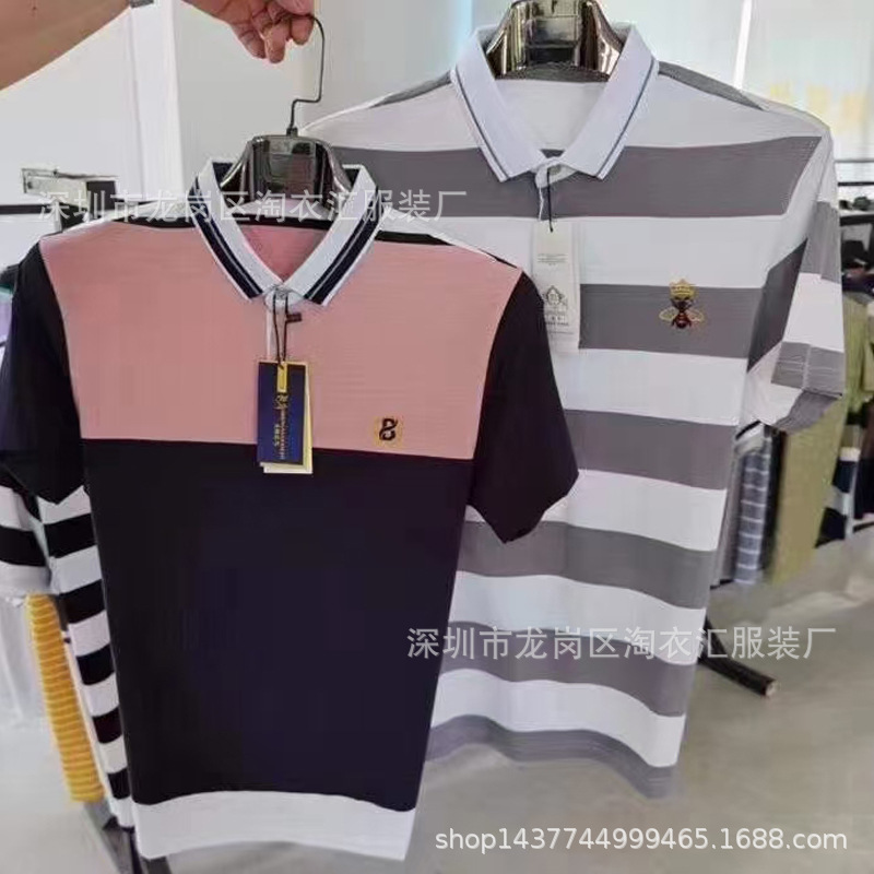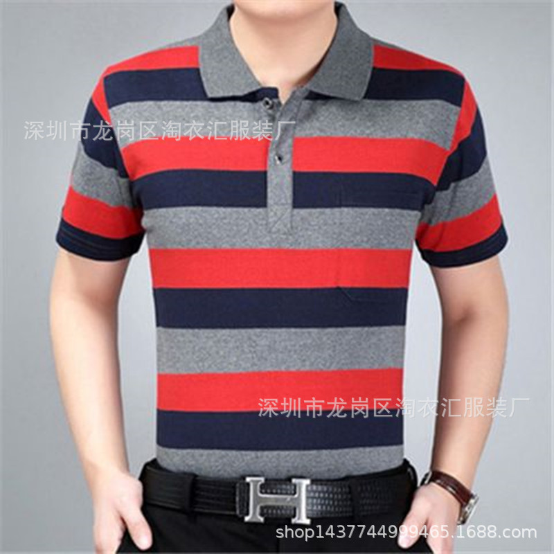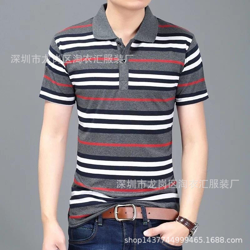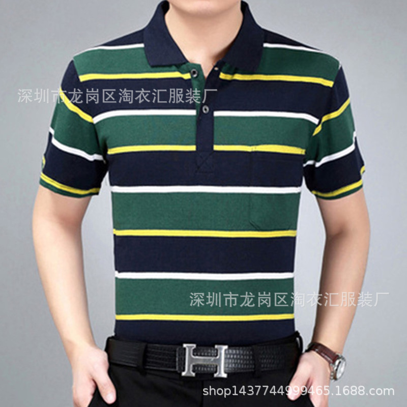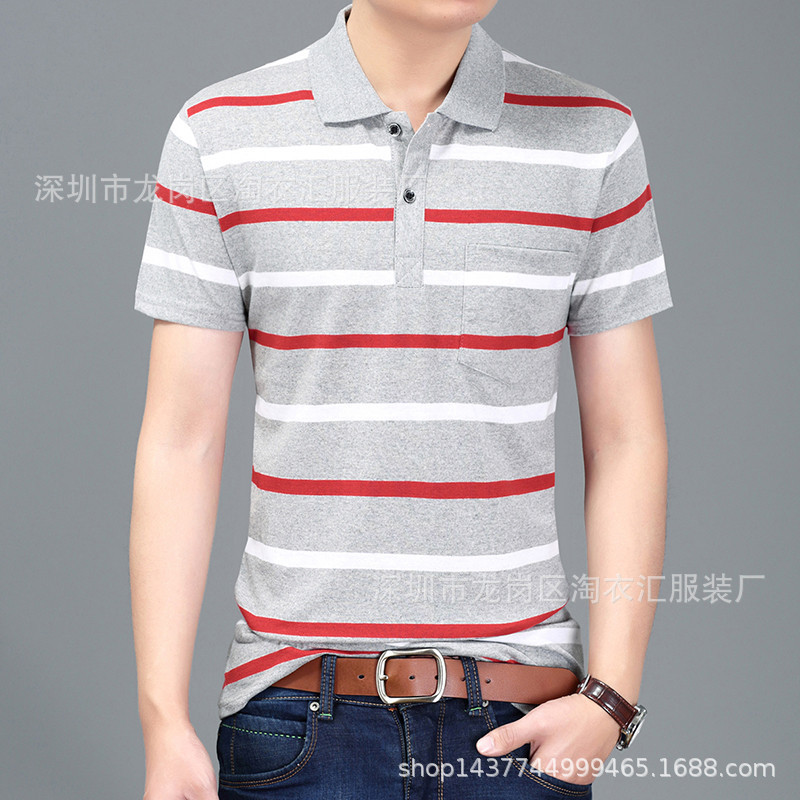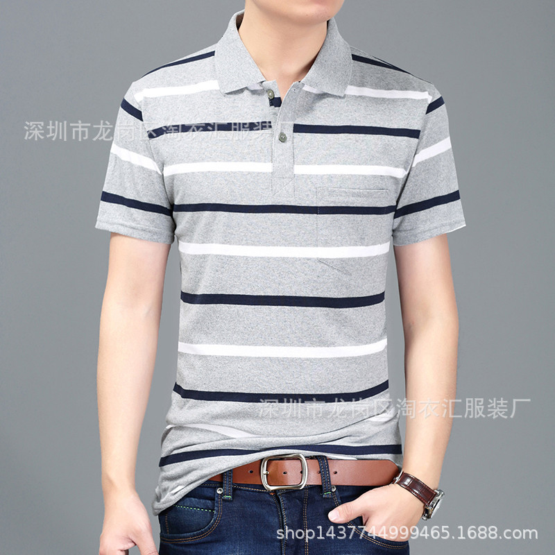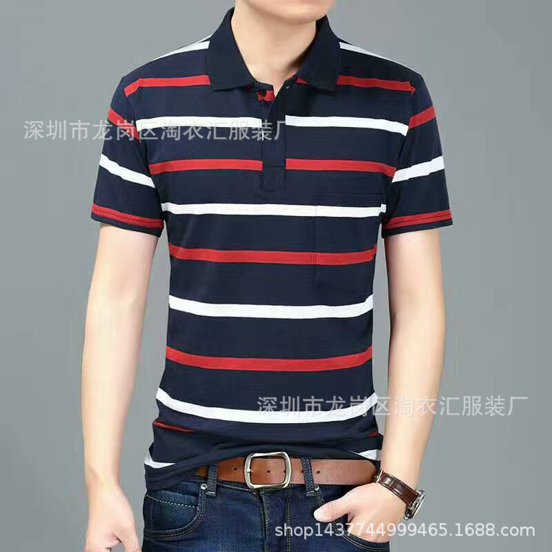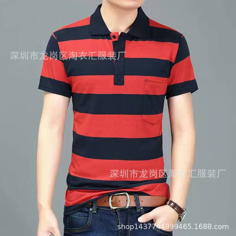 Мужская летняя новая стильная повседневная футболка с полосатыми лацканами и коротким рукавом с карманами и брюками 1638, производитель, оптовая продажа, бесплатная доставка