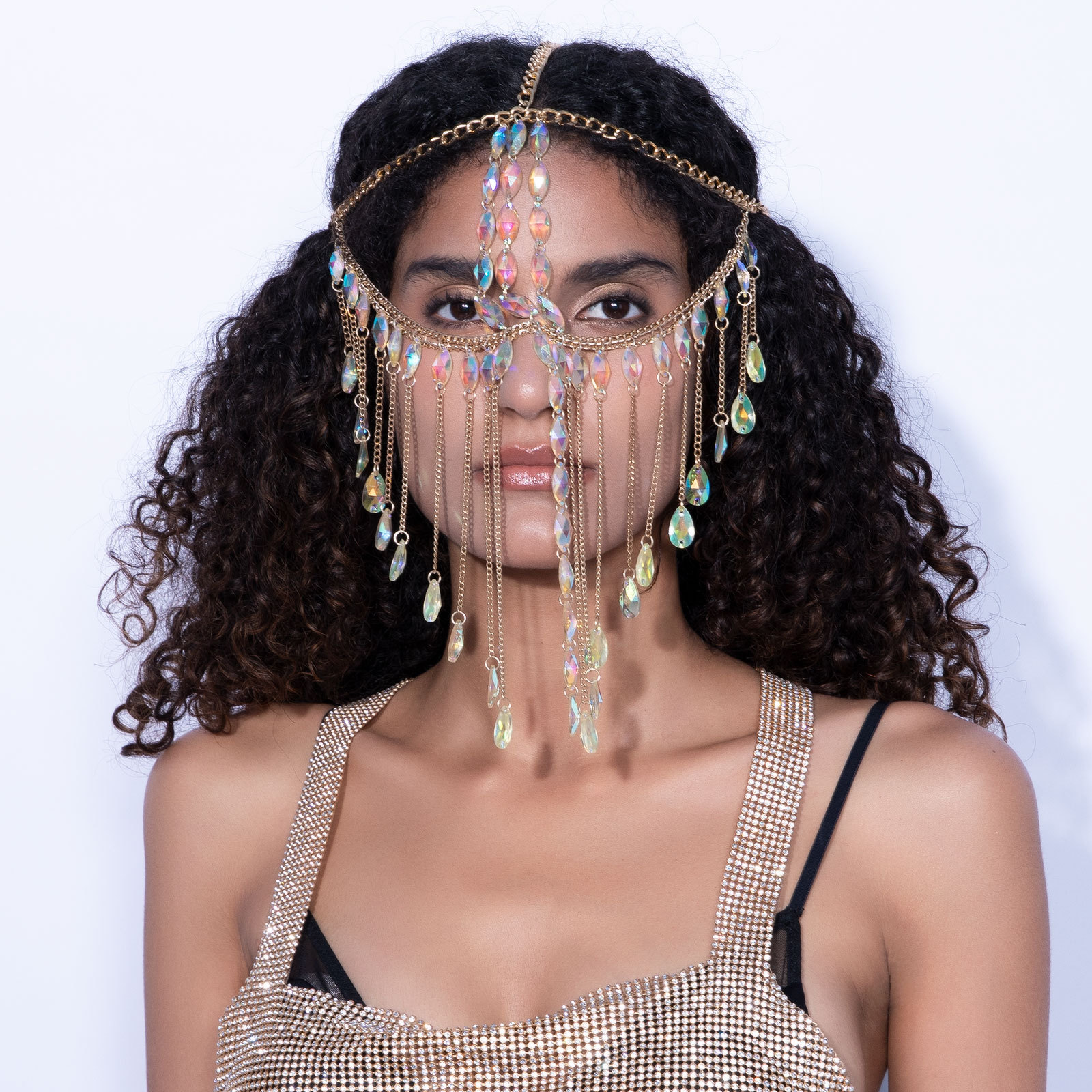 Европейский и американский национальный музыкальный фестиваль в стиле головной убор женский ретро кисточка маска лицо маска акриловой цепи для волос
