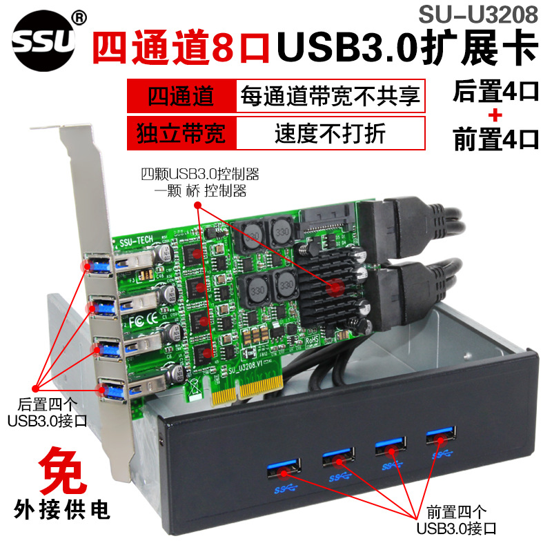 PCI-E-USB3.0 карта расширения независимая 4-канальная карта расширения USB3.0 8-портовая Серверная промышленная камера NEC