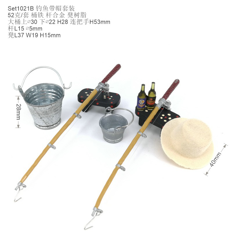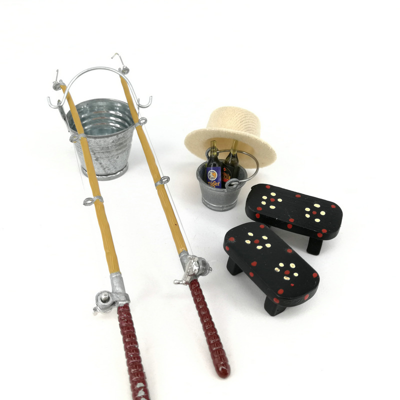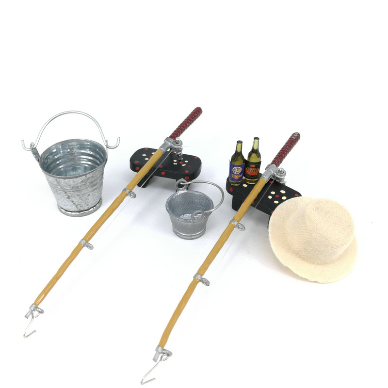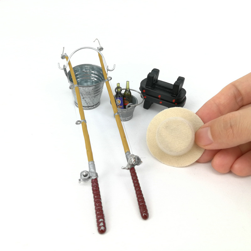 Уличные аксессуары для кукольного домика [Мини-рыбалка с шляпой рыбака 9 шт.] сцена рыбалки с имитационным изображением солдата