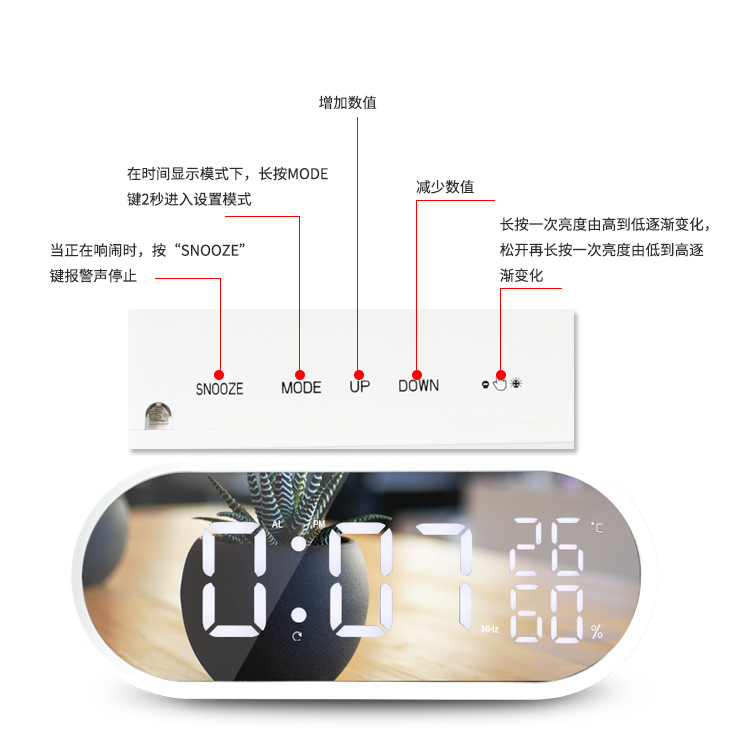 Трансграничный экспорт многофункциональные бытовые светодиодные цифровые зеркальные часы Креативный электронный термометр гигрометр Будильник