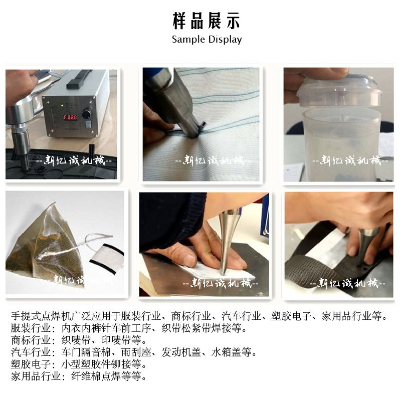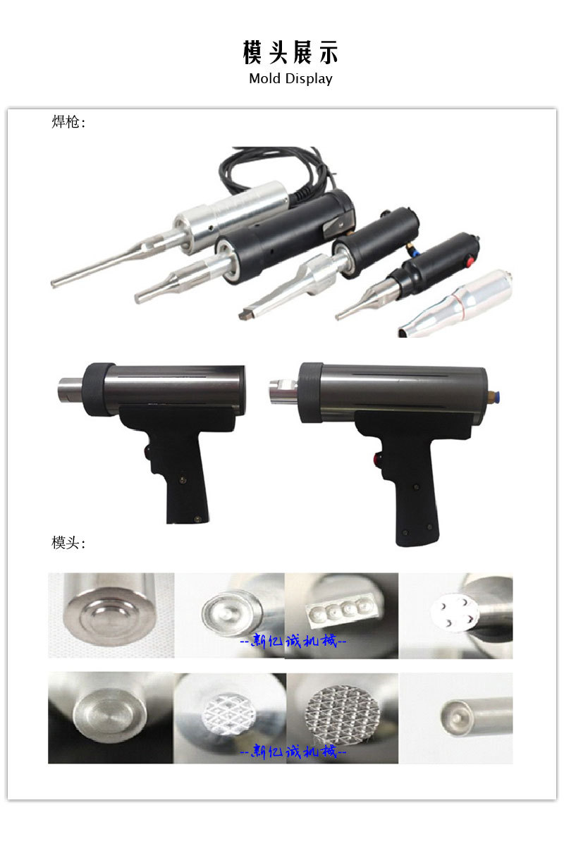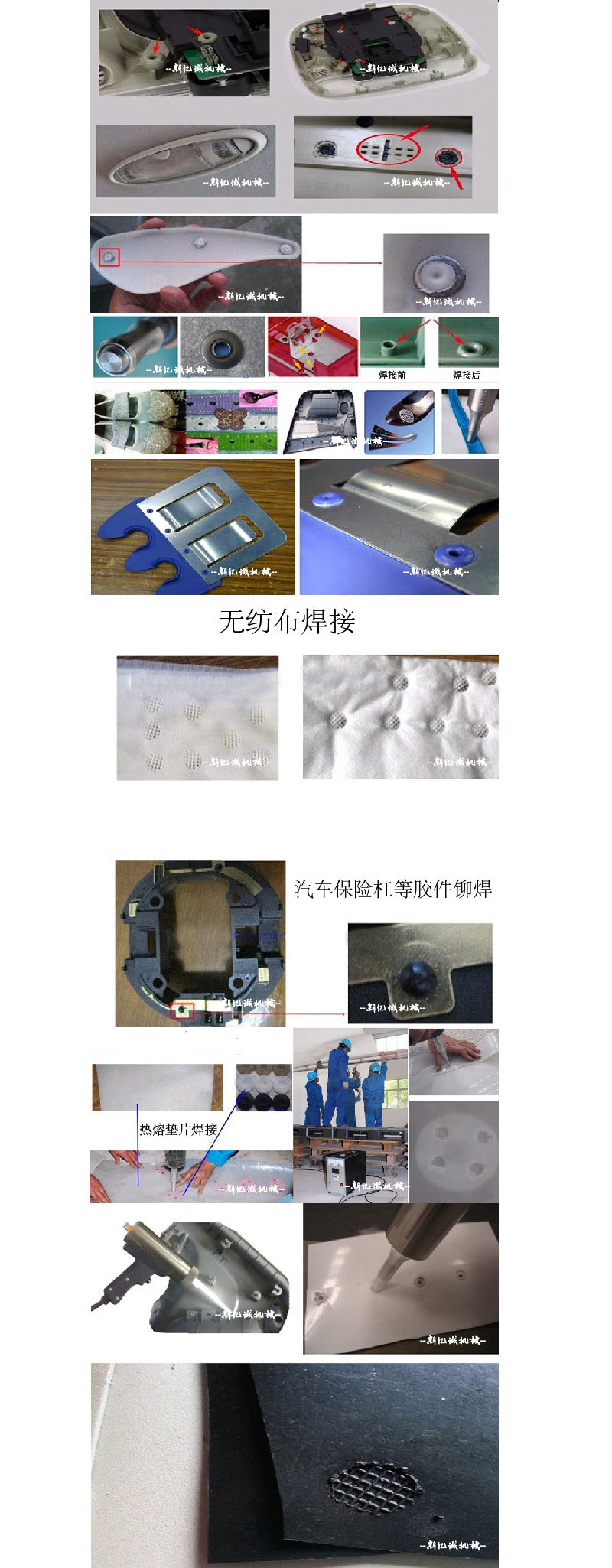 超声波不仅可以被用来焊接金属,硬热塑性塑料,还可以加工织物和薄膜等。手持式超声波焊接机可根据待焊接产品的铆点尺寸大小及焊接要求,更换不同的超声波焊头,既快捷又方便,而且成本相对专用汽车门板超声波焊接机要低得多,方面满足客户的需求。