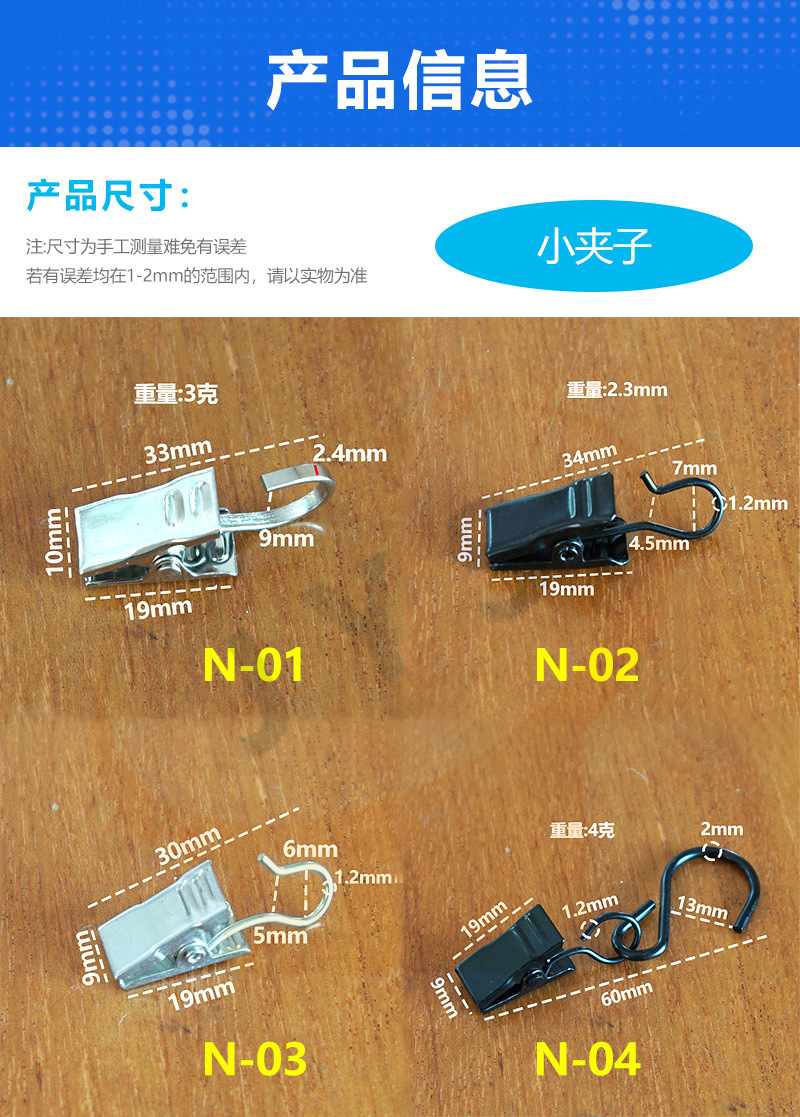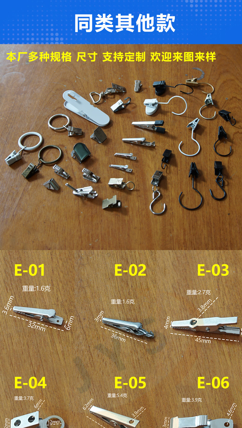 跨境厂家供应加厚窗帘夹子金属电镀挂钩不锈钢浴帘窗帘配件挂钩