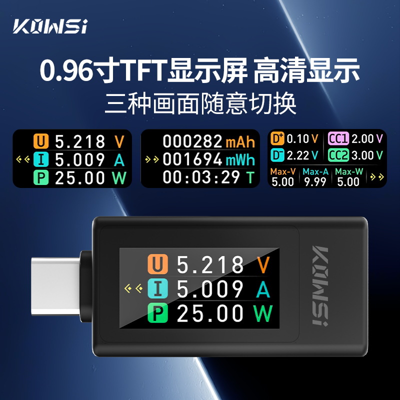KWS-1902L Тестер Cortex Type-c, таблица испытаний тока и напряжения с цветным экраном, двусторонний тестер USB-C
