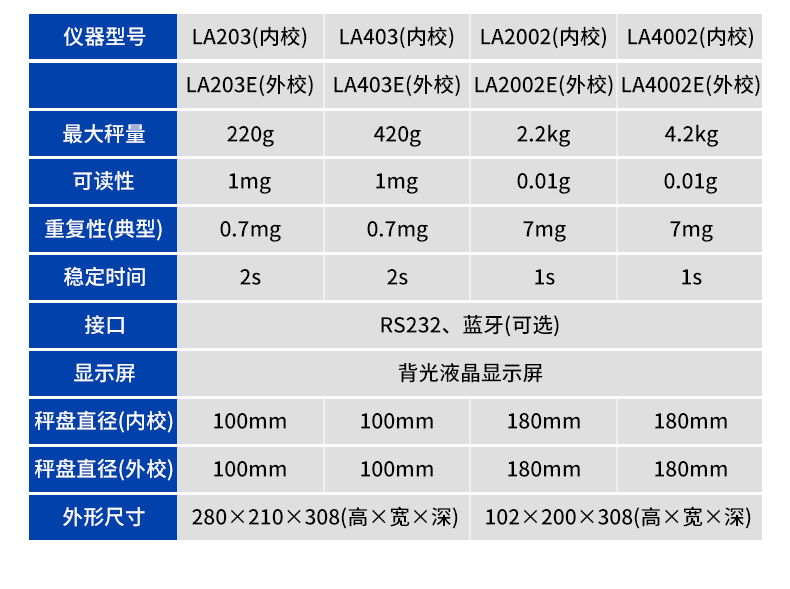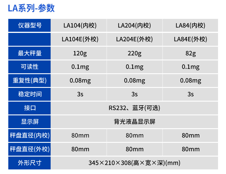 LA104E; LA204E; LA203E; Внутренняя калибровка MA55 (внутренняя калибровка на сто тысяч) 52 г/0,01 мг; Принтер РС-П25; Принтер USB-P25; Принтер РС-П26