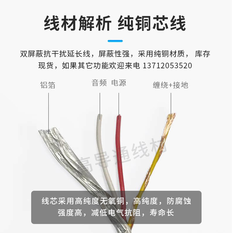 适用于汽车货车监控视频,大巴摄像头视频连接线等各种连接设备,航空插头2芯3芯4芯5芯6芯7芯均可定,铝箔+缠绕双屏蔽抗干扰,纯铜导体,传输快速。