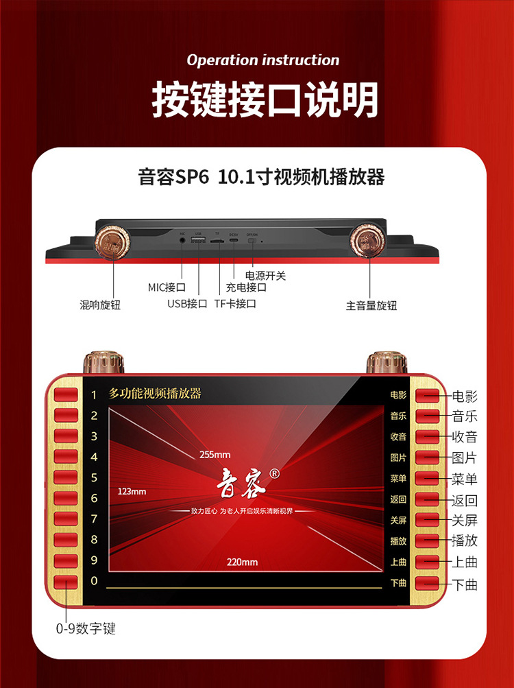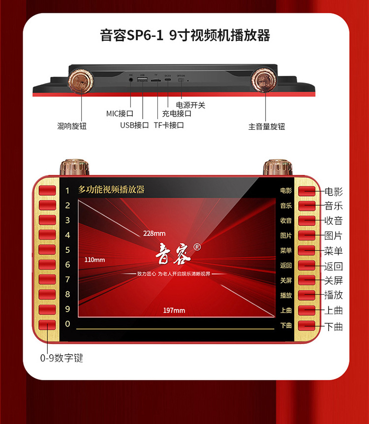Yinrong SP6 HD 13inch радиоплеер для пожилых людей, карта пения HD, квадратный танец, видеомузыкальный плеер