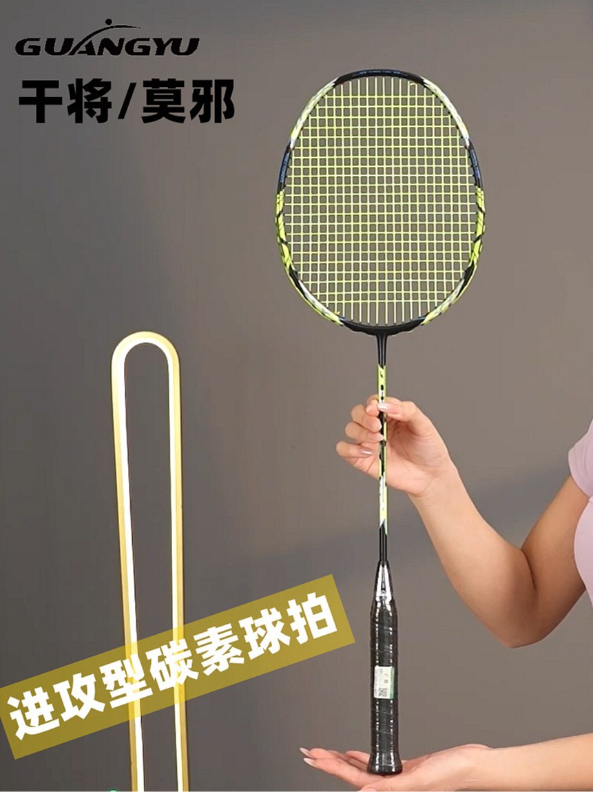 干将/莫邪采用了纤细的拍杆,足够的硬度配合进一步流体工程优化的拍框,大限度的提升击球威力,尽量推迟羽毛球飞行过程中的减速,确保扣杀效果势大力沉,涂装上是低调的华丽,磨砂亚光精美漆水,彰显个性和品质感。