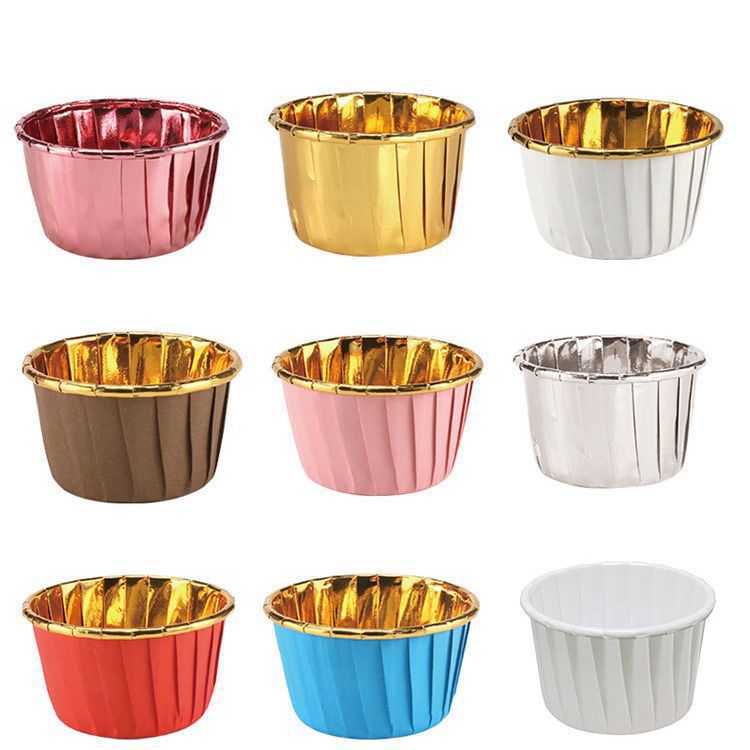 В наличии бумажные стаканчики для тортов из золота и серебра, бумажные стаканчики с двусторонней сеткой из алюминиевой фольги с закругленными краями, бумажные вкладыши для выпечки кексов, одноразовые стаканчики с закругленными краями.