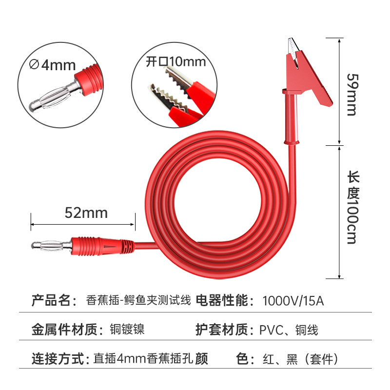 Банановый штекер к крокодиловому зажиму, шнур питания для стабилизации напряжения, соединительная линия бананового штекера, 4 мм, чистая медь, 15A, может быть обработана