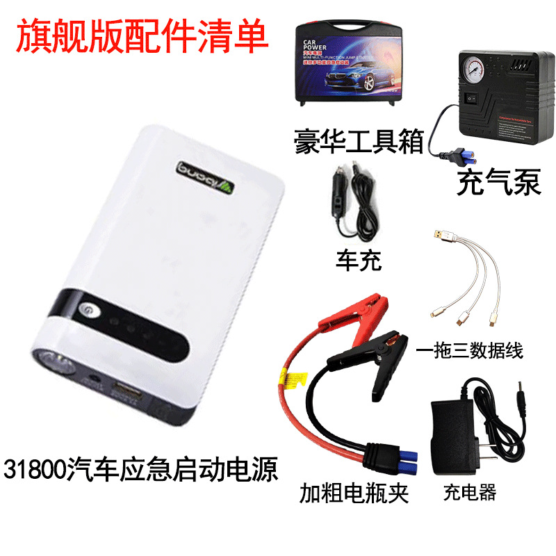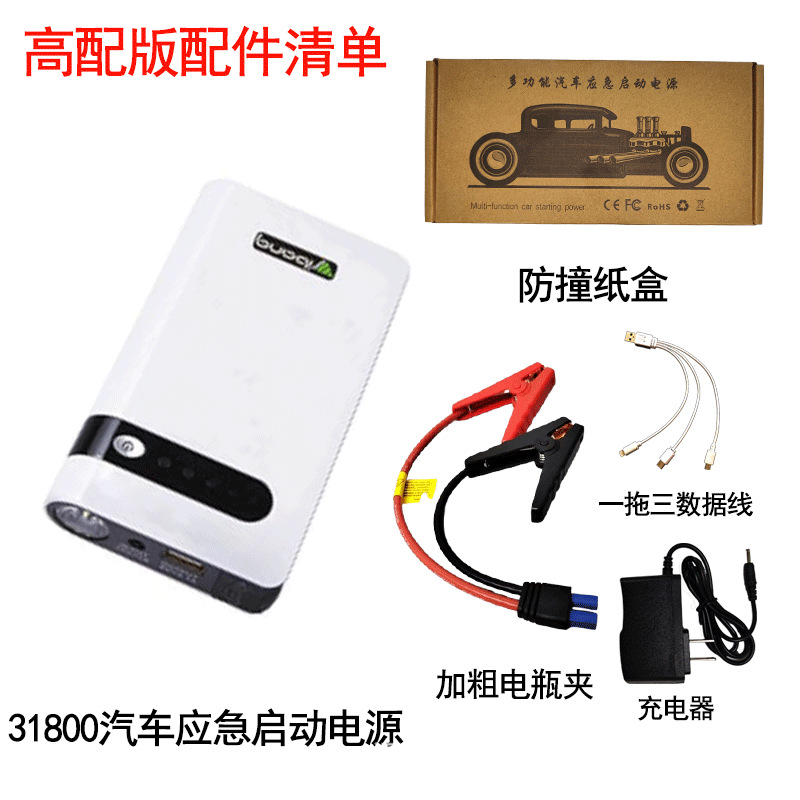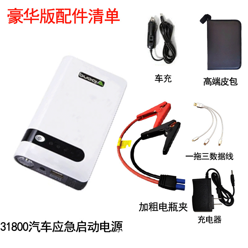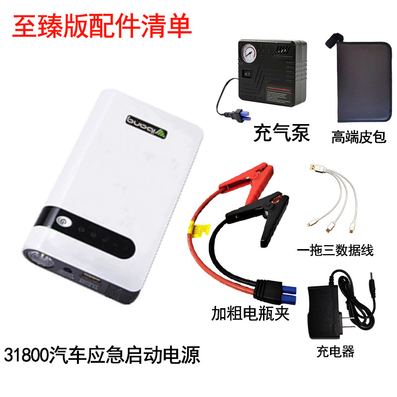 Высокая конфигурация 30000 мАч (хост + жирный зажим + от одного до трех + зарядное устройство); Роскошный пакет емкостью 30 000 мАч (хост + жирный зажим + зарядное устройство + от одного до трех + автомобильное зарядное устройство + кожаная сумка); 30000 мАч Ultimate Edition (хост + жирный зажим + зарядное устройство + от одного до трех + воздушный насос + кожаная сумка); Флагманская версия емкостью 30000 мАч (хост + жирный зажим + зарядное устройство + автомобильное зарядное устройство + воздушный насос от одного до трех + ящик для инструментов)