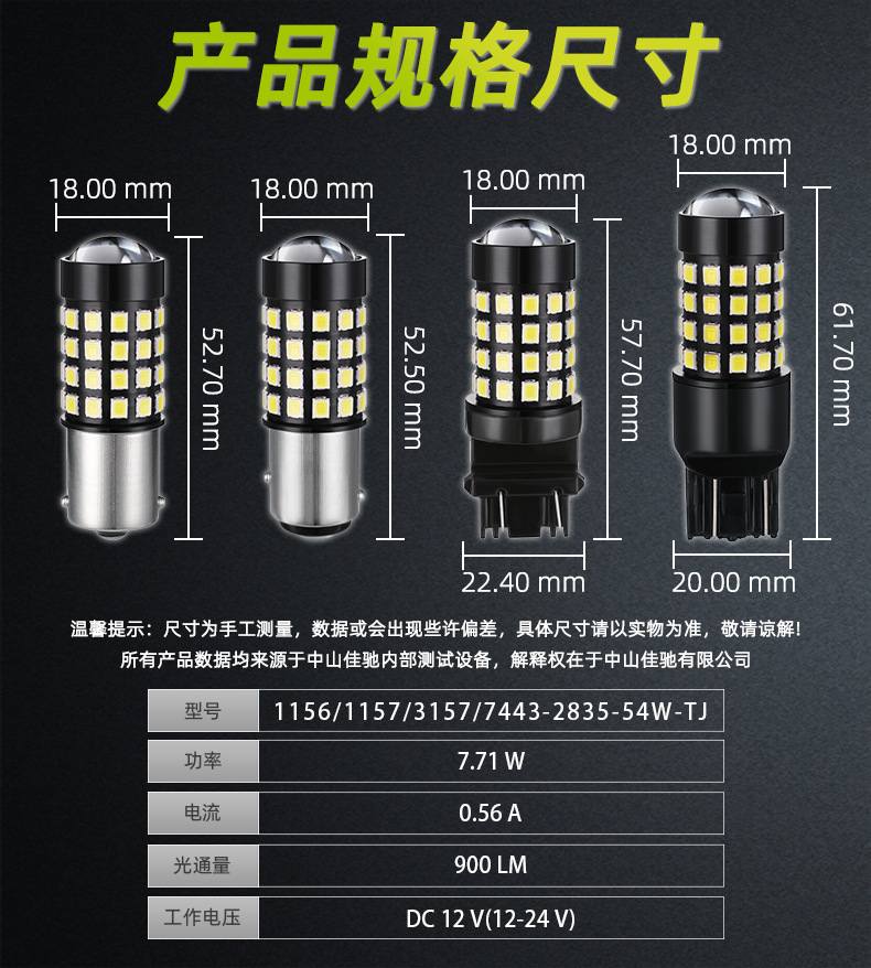 Автомобильная светодиодная лампа поворотника T18/T20/T25, универсальная лампа стоп-сигнала, 2835, ходовая лампа, 54 светодиода, высокая яркость