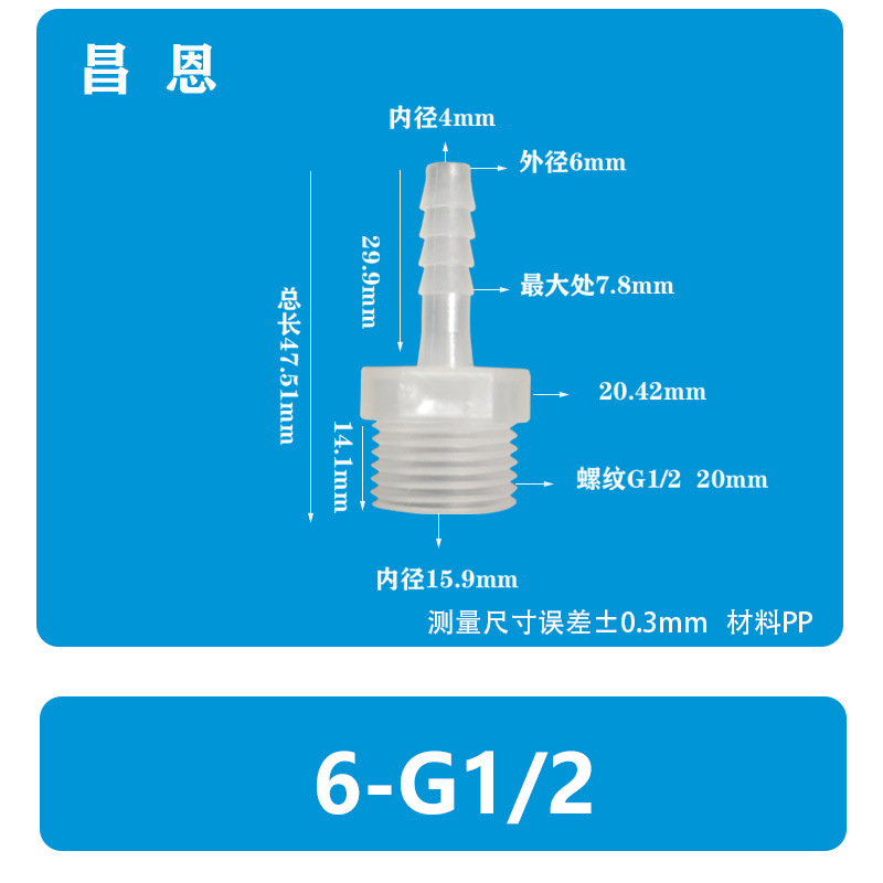 Пластиковое соединение, 4 точки, 6 точек, внешняя резьба, пагода, ПП, пластиковое прямое соединение, кислородная пагода, антикоррозийная труба