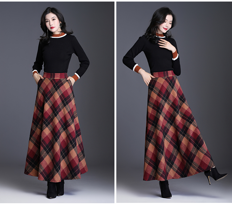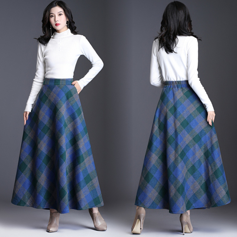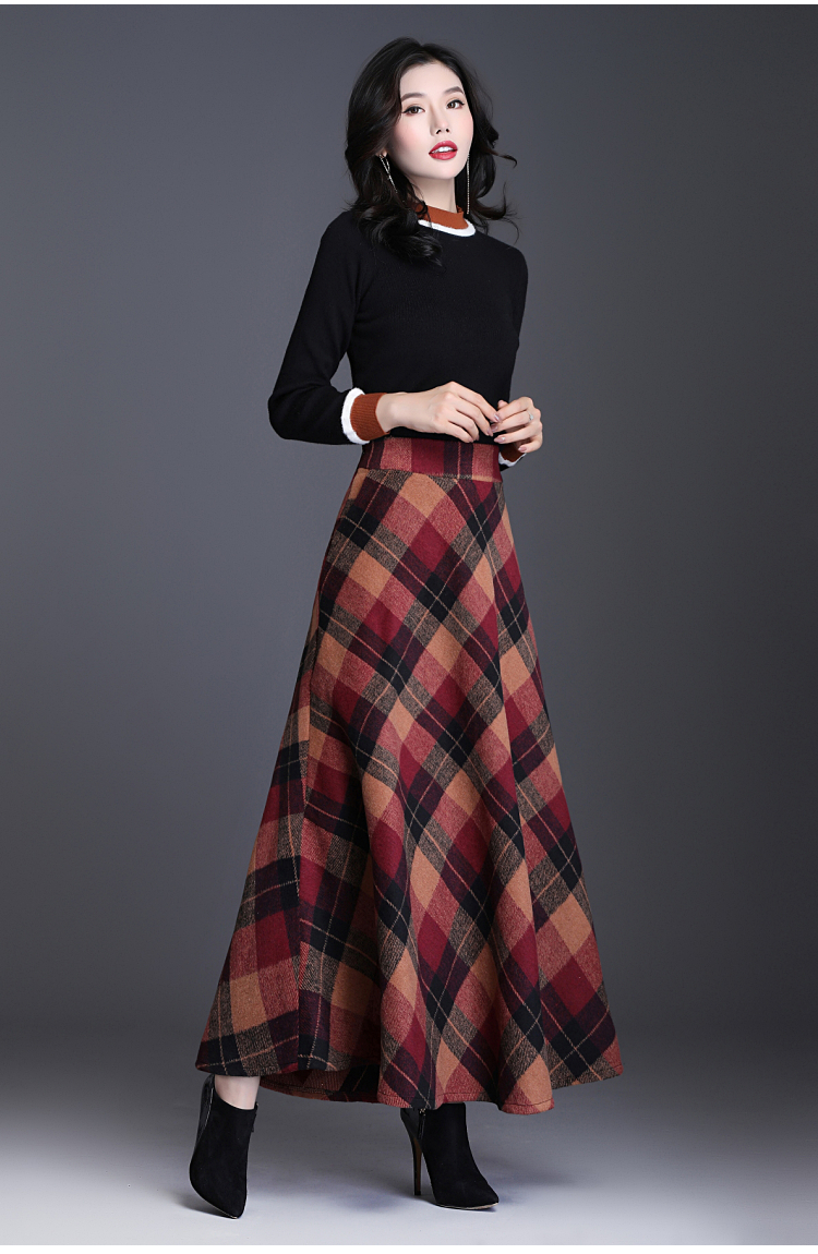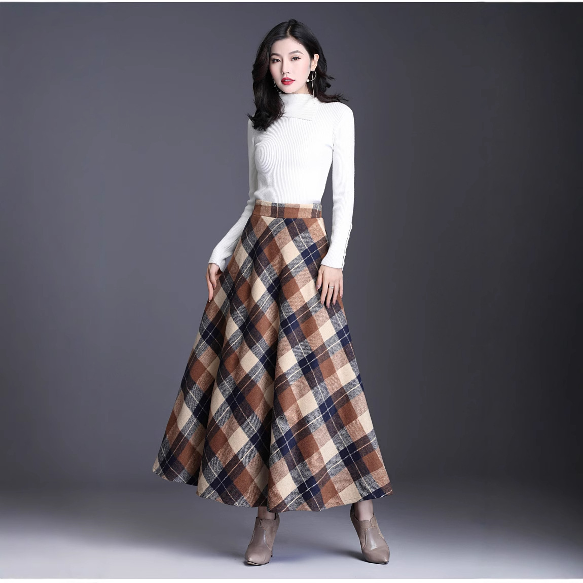В наличии: винтажная шерстяная юбка миди в клетку для женщин, осень-зима, юбка А-силуэта с высокой талией, шерстяная юбка, длинная юбка, утепленная.