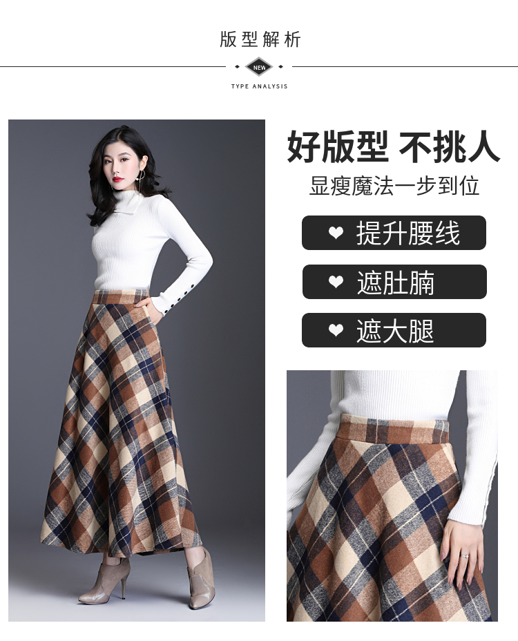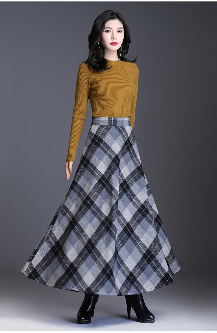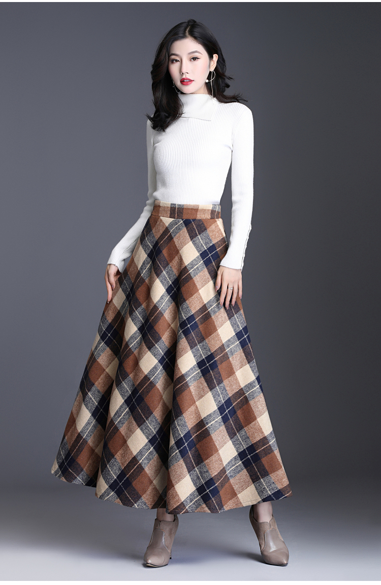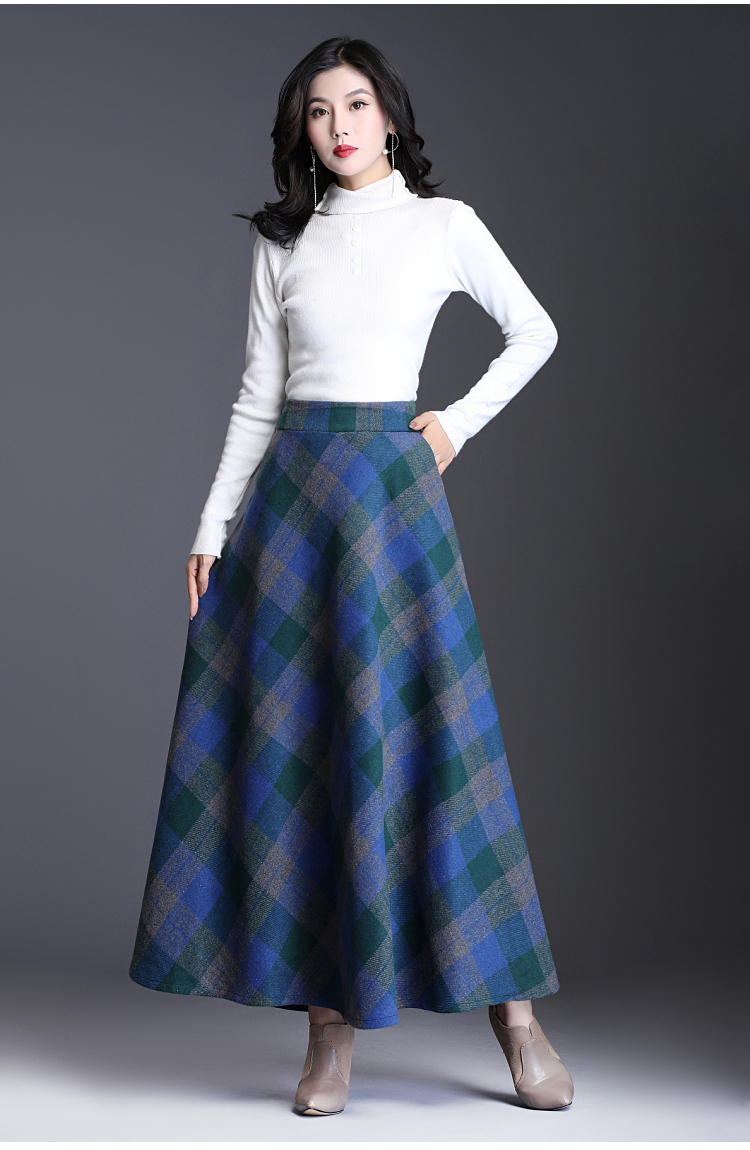 В наличии: винтажная шерстяная юбка миди в клетку для женщин, осень-зима, юбка А-силуэта с высокой талией, шерстяная юбка, длинная юбка, утепленная.