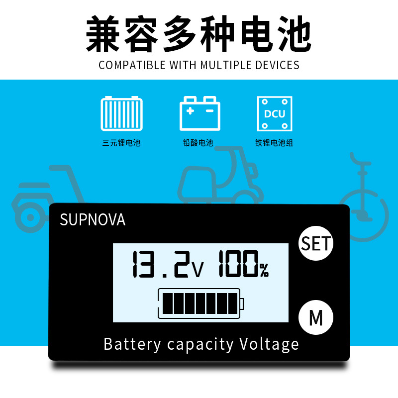 ЖК-свинцово-кислотная литиевая батарея двухпроводная 10-100 В Цифровой дисплей мощности вольтметр цифровой измеритель мощности процентный метр