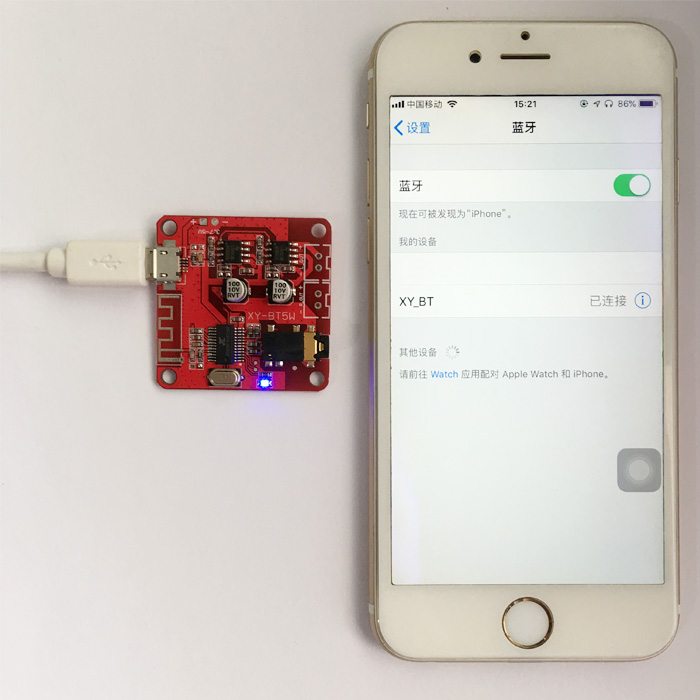 接通电源之后,蓝色指示灯长亮,进入蓝牙模式;播报“提示音”后进入配对模式等待配对;手机蓝牙搜索到“XY-BT”(解码板设备名称),点击“XY-BT”连接,连接成功后播放“提示音”,即可播放手机音乐;蓝牙断开连接后解码板准备下一次配对,并播放“提示音”后进入配对模式等待配对。