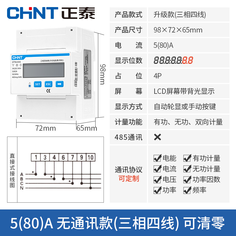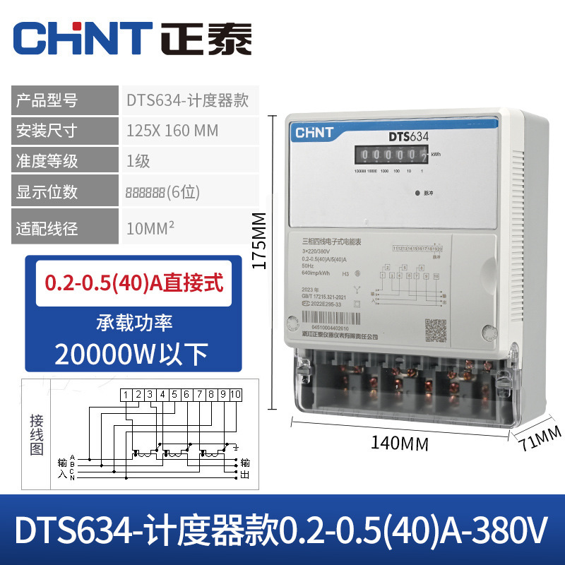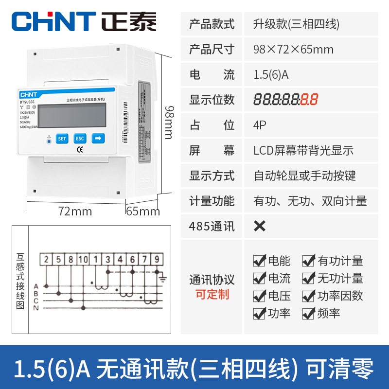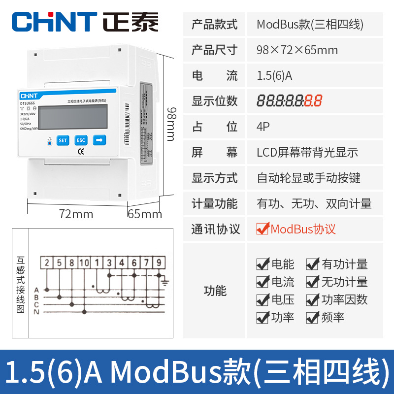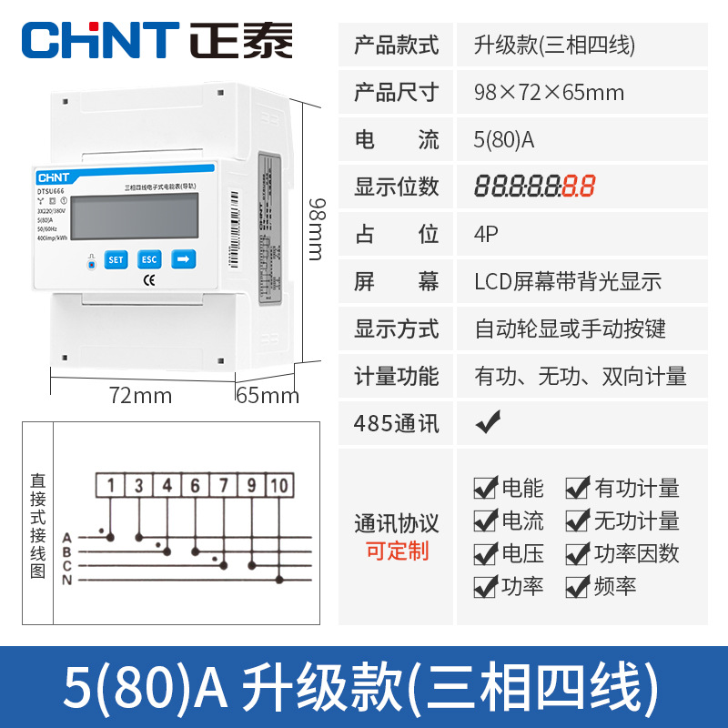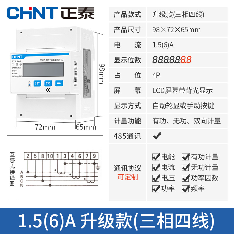 Chint трехфазный четырехпроводной Амперметр 380 В трансформатор высокой точности большой мощности электронный активный DTS634