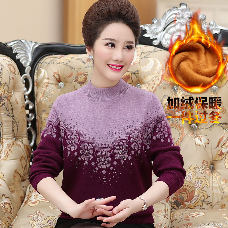 Женский свитер на флисовой подкладке для пожилых людей 60 70 утолщенная теплая вязаная Базовая рубашка зимняя одежда для бабушки 80 Топ для старой леди