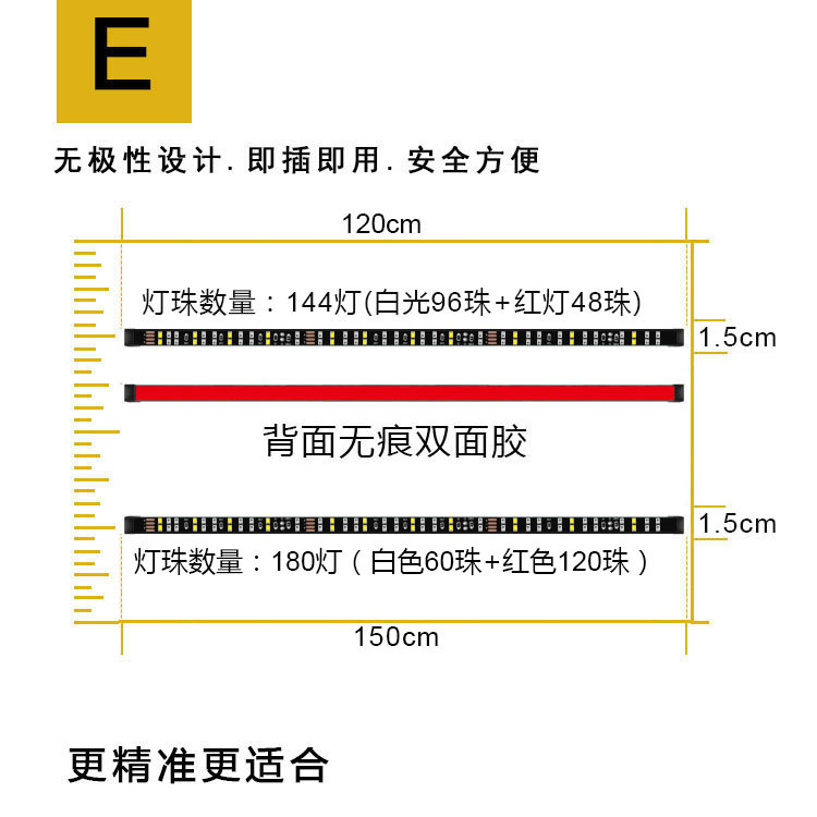 产品名称:60”256LED双排皮卡车刹车转向尾灯条 4PIN端子滴胶汽车尾灯