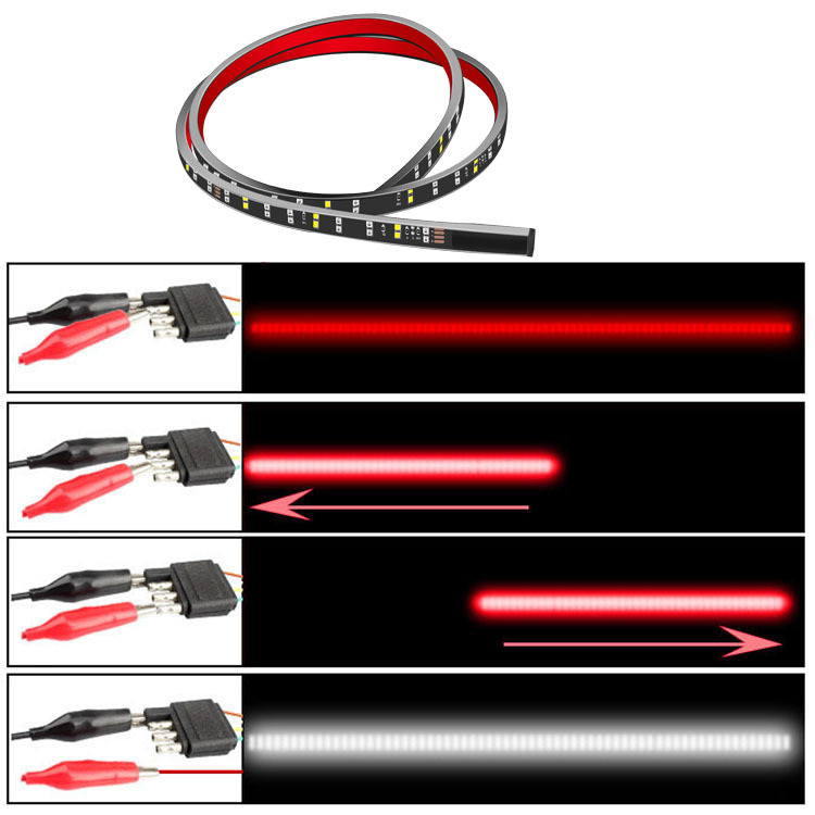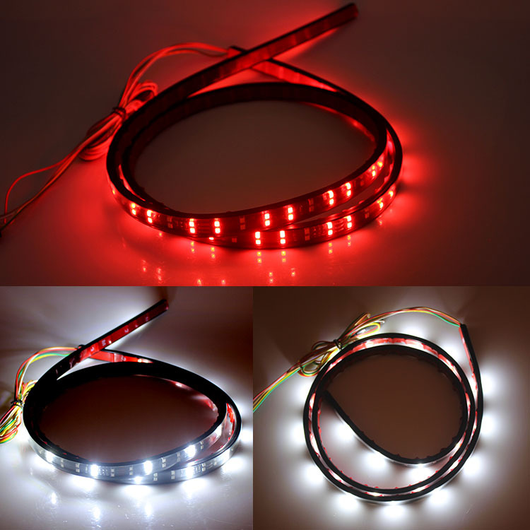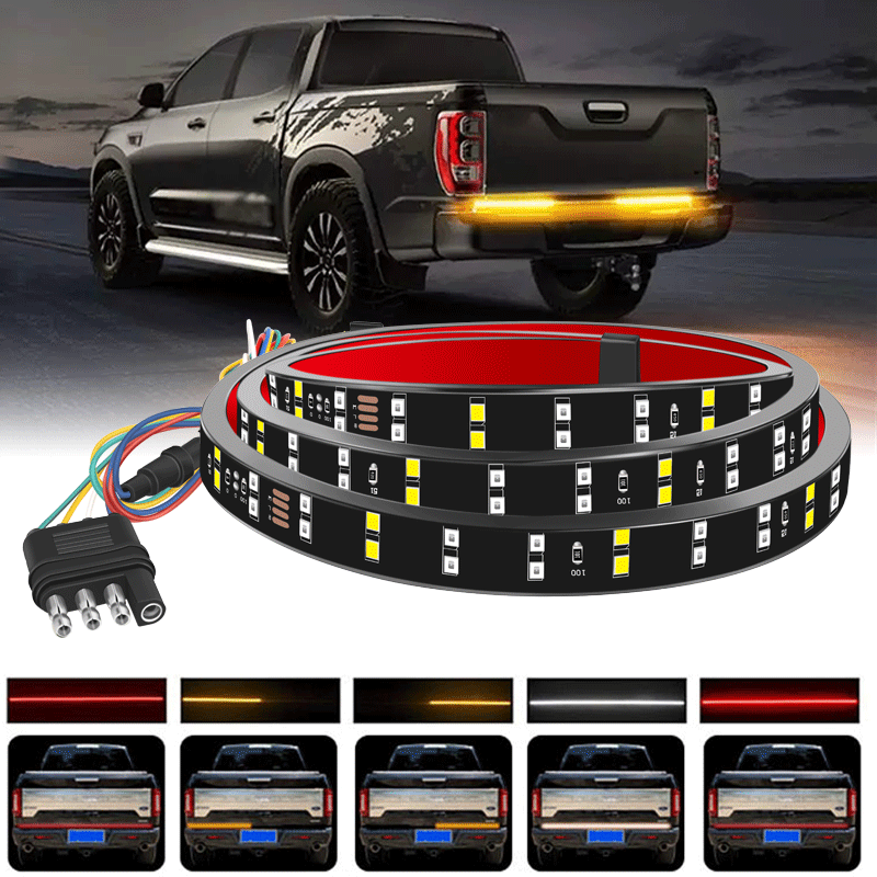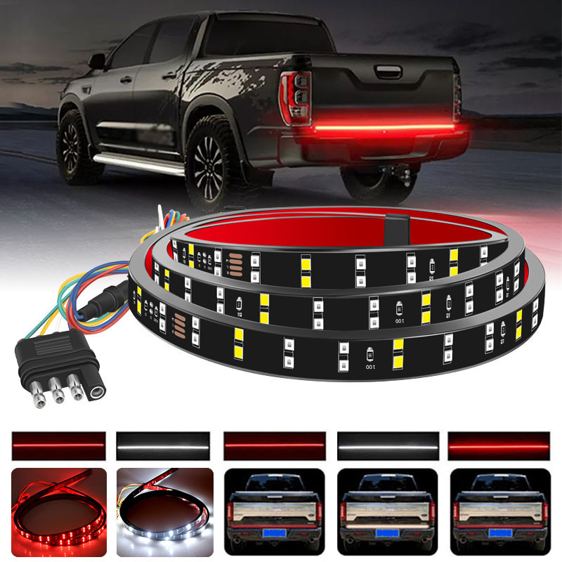 60” Truck Tailgate Light Bar Double Row LED Flexible Strip Running Turn Signal Brake Reverse Tail light For Pickup Trailer SUV RV VAN Car Towing Vehicle,Red/White,No-Drill