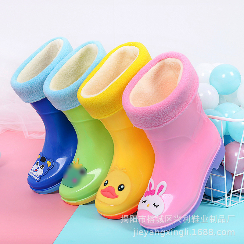 Модные детские резиновые сапоги с героями мультфильмов, мужская и женская Водная обувь, теплые водные сапоги на флисовой подкладке, студенческие Нескользящие износостойкие резиновые сапоги, детские водные сапоги