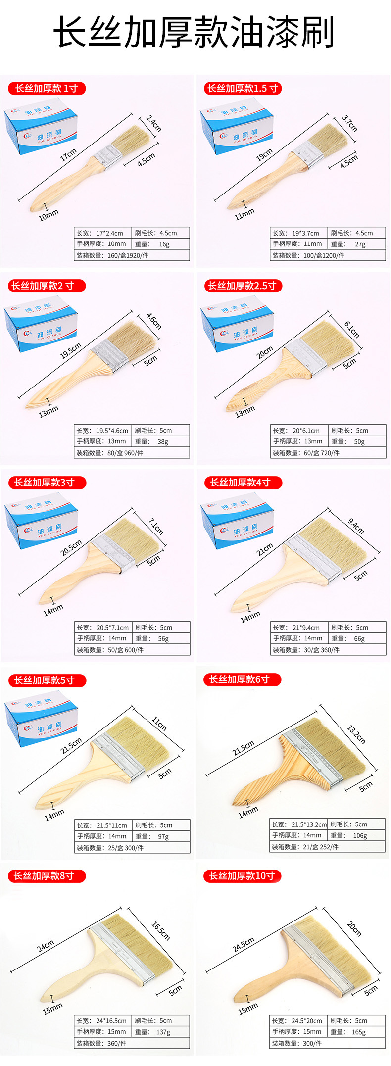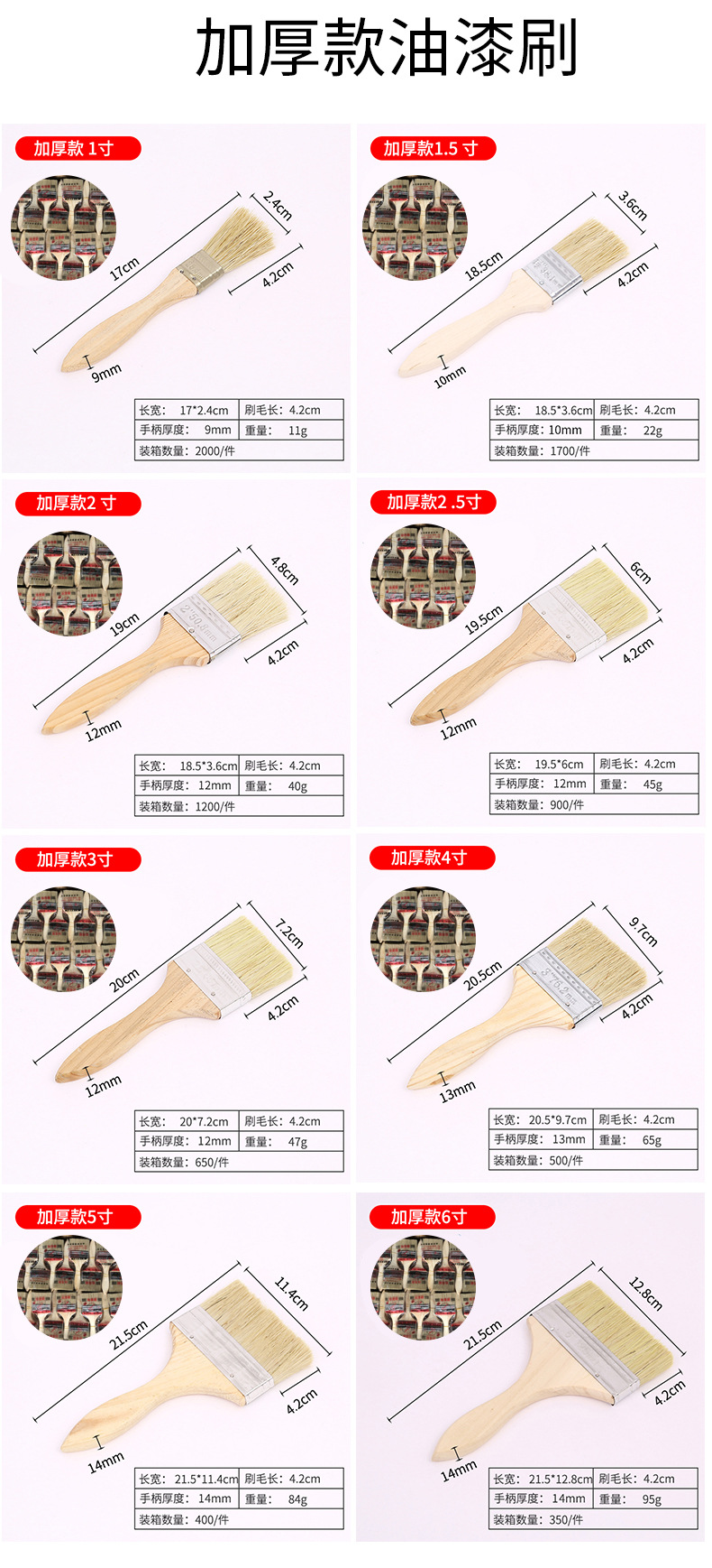 Белый цвет; утолщенная модель 1inch (1800 шт./шт.) ширина 25 мм; щетина из химического волокна; Белый цвет; утолщенная модель 1.5inch (1100 шт./шт.) ширина 36 мм; щетина из химического волокна; Белый цвет; утолщенная модель 2inch (1200 шт./шт.) шириной 50 мм; щетина из химического волокна; Белый цвет; утолщенная модель 2.5inch (900 шт./шт.) ширина 62 мм; щетина из химического волокна; Белый цвет; утолщенная модель 3inch (650 шт./шт.) ширина 73 мм; щетина из химического волокна; Белый цвет; утолщенная модель 4inch (500 шт./шт.) ширина 98 мм; щетина из химического волокна; Белый цвет; утолщенная модель 5inch (400 шт./шт.) ширина 115 мм; щетина из химического волокна; Белый цвет; утолщенная модель 6inch (350 шт./шт.) ширина 140мм; щетина из химического волокна; Белый цвет; утолщенная модель 8inch (250 шт./шт.) ширина 173 мм; щетина из химического волокна; Белый цвет; Обычная модель 1inch (2600 шт./шт.) ширина 2,4 мм; щетина из химического волокна; Белый цвет; Обычная модель 1.5inch (1430 шт/шт) ширина 36мм; щетина из химического волокна; Белый цвет; Обычная модель 2inch (1100 шт/шт) ширина 46мм; щетина из химического волокна; Белый цвет; Обычная модель 2.5inch (800 шт./шт.) ширина 62 мм; щетина из химического волокна; Белый цвет; Обычная модель 3inch (600 шт./шт.) ширина 63 мм; щетина из химического волокна; Белый цвет; Обычная модель 4inch (500 шт./шт.) шириной 90 мм; щетина из химического волокна
