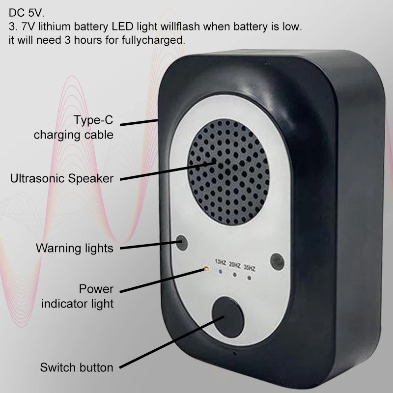 Level 4- ultrasonic Frequency will emit for 1-3 level 3 different ultrasonic frequency sounds with 6seconds ,digital display 4.