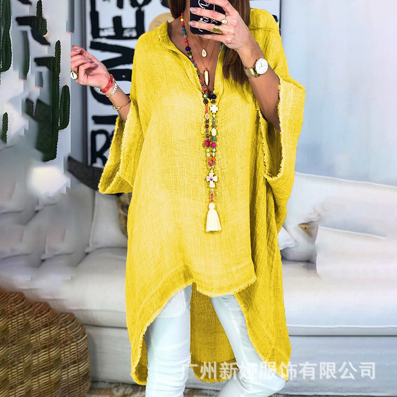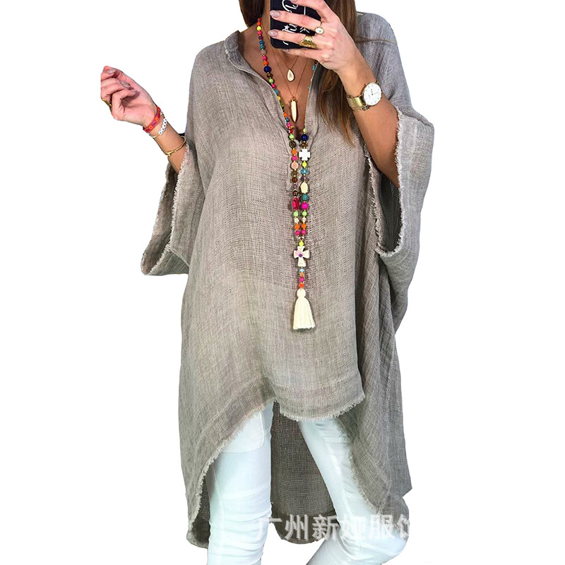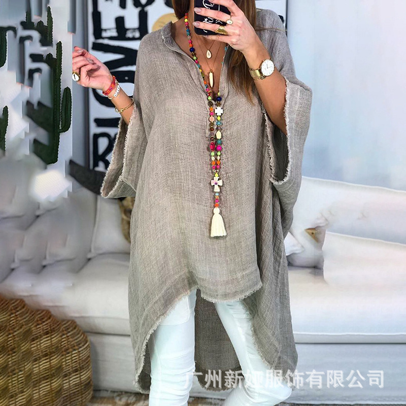 Женские топы из хлопка и льна 2020wish, свободные повседневные однотонные рубашки с V-образным вырезом, женский стиль