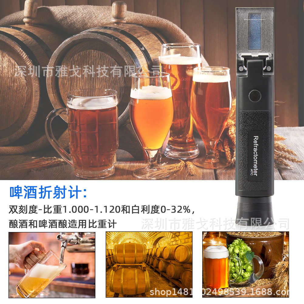 这款白利糖度折光仪包括一个比重刻度。在测量圆弧或麦芽汁的初始重力时,您不必在白利糖度标度和重力之间进行转换。尽管如此,由于酒精的存在会影响读数,因此测量最终重力将需要进行一些计算。最重要的是,准确的读数只需几滴液体。在此过程中,无需为啤酒或葡萄酒测试而丢失整个比重计容器。 2.比重刻度将快速读取您的初始重力。发酵开始并且有酒精存在后,按照白利糖度计使用折光率计算器对重力进行最终校正。 3.该折光仪是专门为酿造啤酒而设计的,还可以用于:水果,蔬菜,蜂蜜。