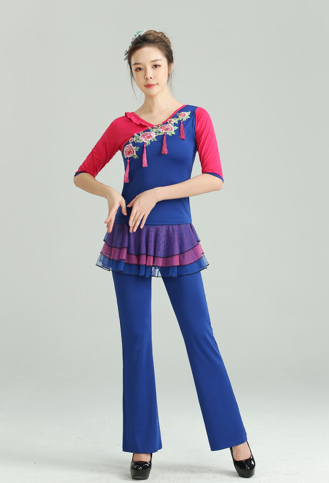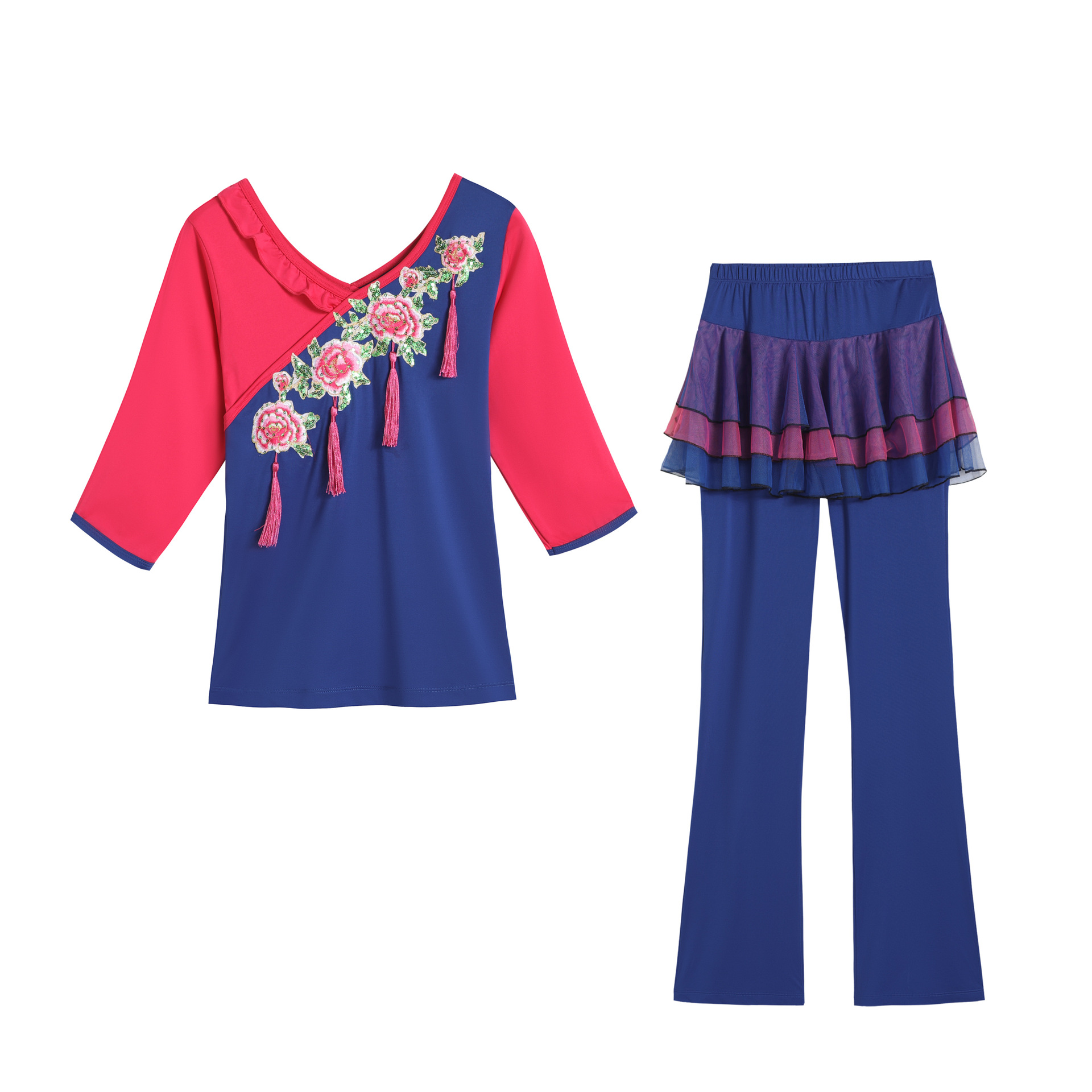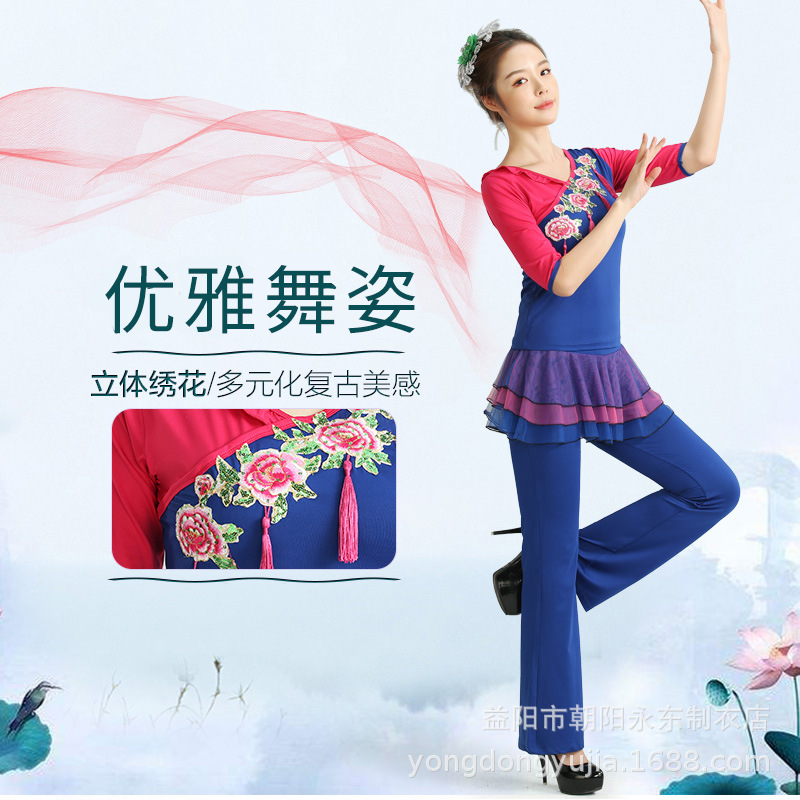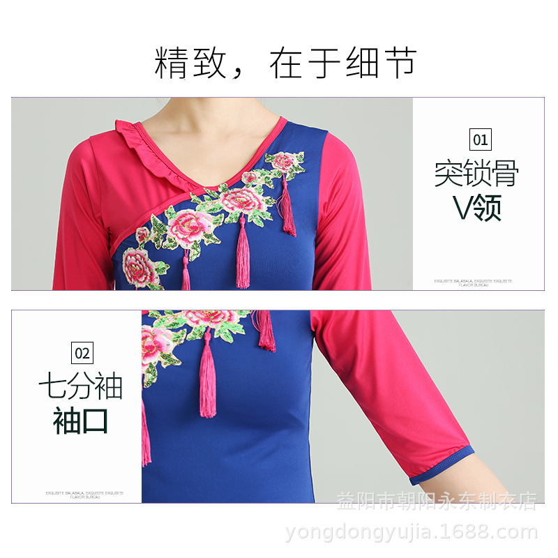 Квадратный танцевальный костюм Fengti, новый костюм с листьями лотоса, V-образным вырезом, наклейка с кисточкой, подходящая по цвету, костюм для танцевального стола среднего и пожилого возраста