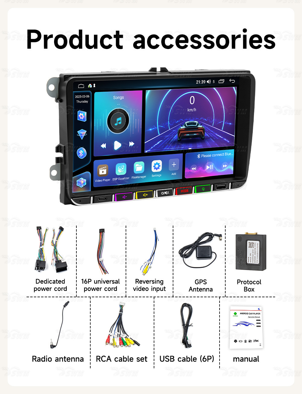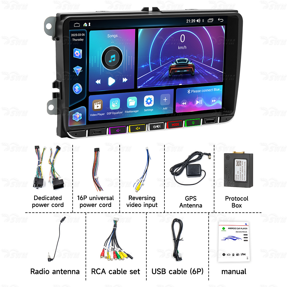 Подходит для универсальных автомобилей Volkswagen 9inch с Android-навигацией, беспроводным CarPlay и умным центральным экраном управления.