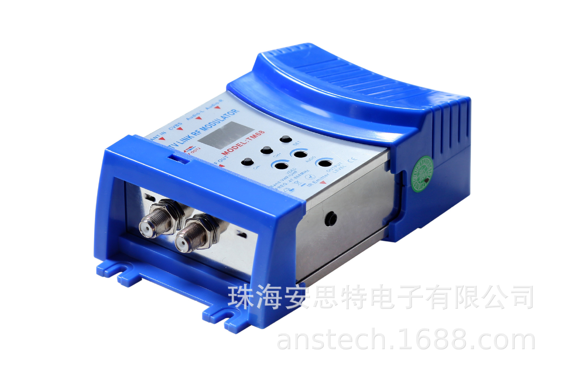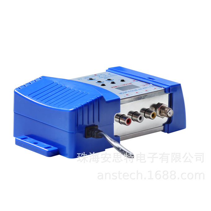 1. Cost effective for your own local CATV system 2. Compatible with Set Top Boxes and other A/V sources 3. VHF/UHF Modulator -PAL/NTSC Selectable 4. Output level adjustable 5. Audio/ Video Output Level Adjustable 6. Output Channel Selectable 7. RF Outputs for use with SLX and TV-Links |