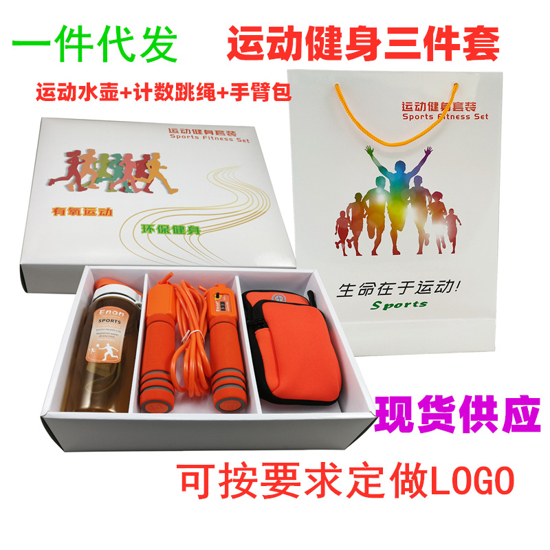 Спортивный комплект из трех предметов, подарочная коробка для конференц-работника, подарочная коробка для подсчета прыжков со скакалкой, спортивная чашка для воды, набор сумок на руку