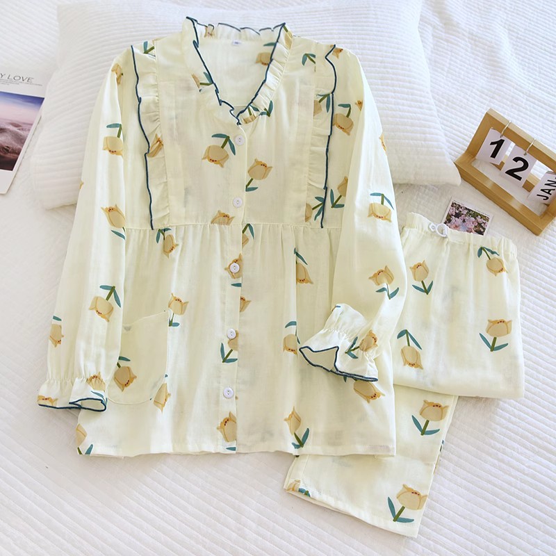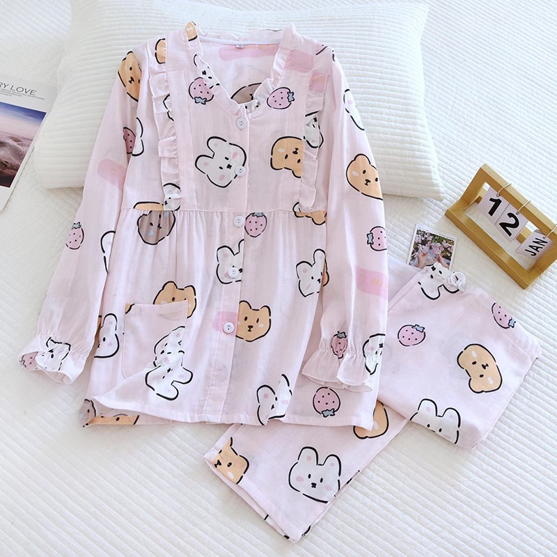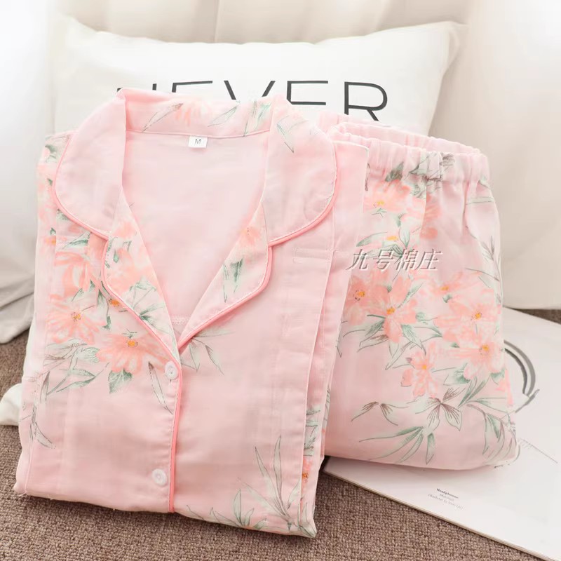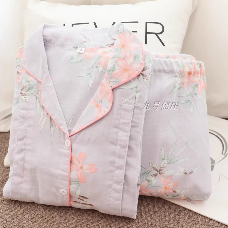 Двойной марлевый лунный костюм из хлопчатобумажной пряжи, весенне-летняя тонкая Послеродовая Пижама для беременных, тканая Хлопковая пижама больших размеров, грудное вскармливание