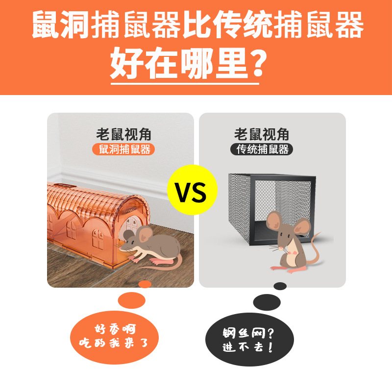 1.本产品设计为鼠洞设计,捕鼠效率更高