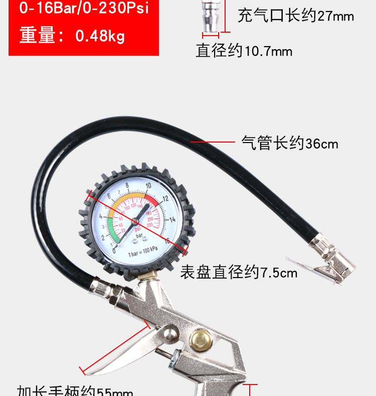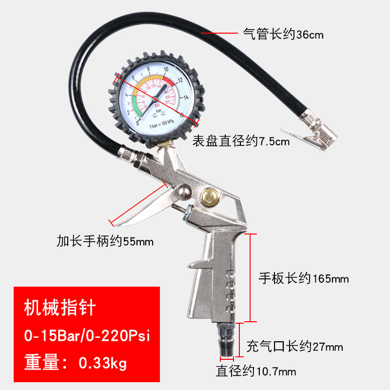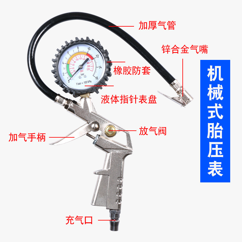 Барометр Измеритель давления в шинах Высокоточный монитор давления в шинах с надувной головкой Автомобильный монитор давления в шинах Воздушный пистолет для наполнения шин