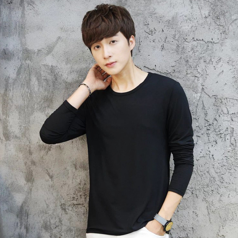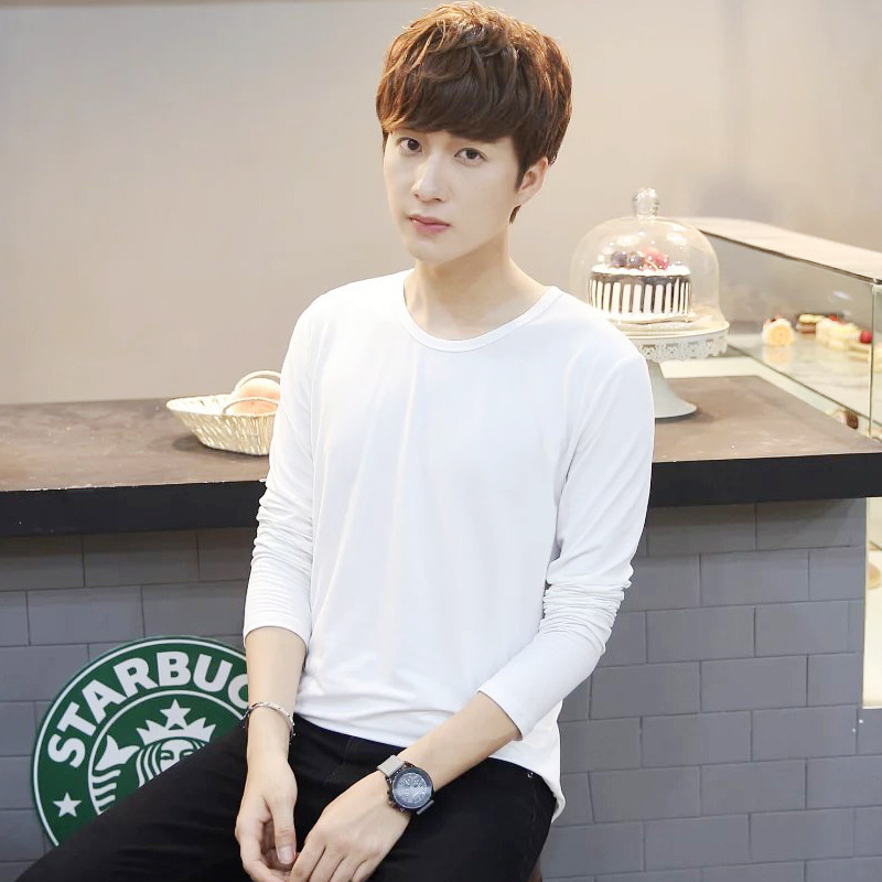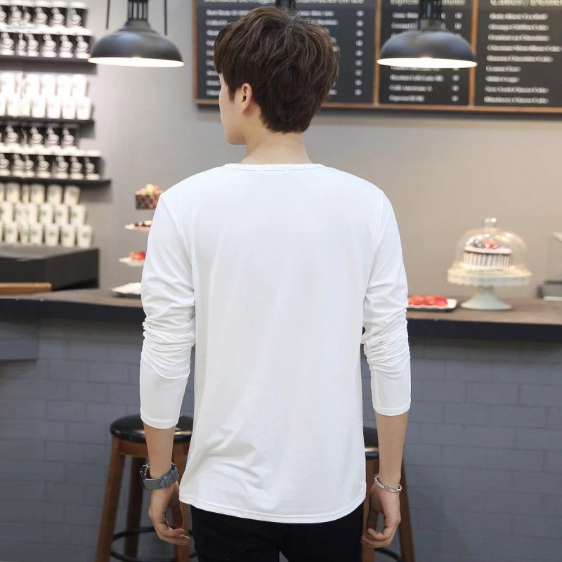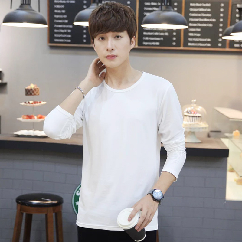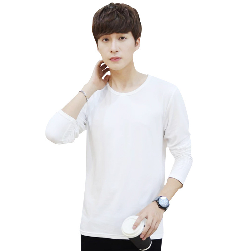 Футболка с длинными рукавами мужская нижняя рубашка чисто белая с круглым вырезом осенняя и зимняя нижняя рубашка свободного большого размера повседневный топ