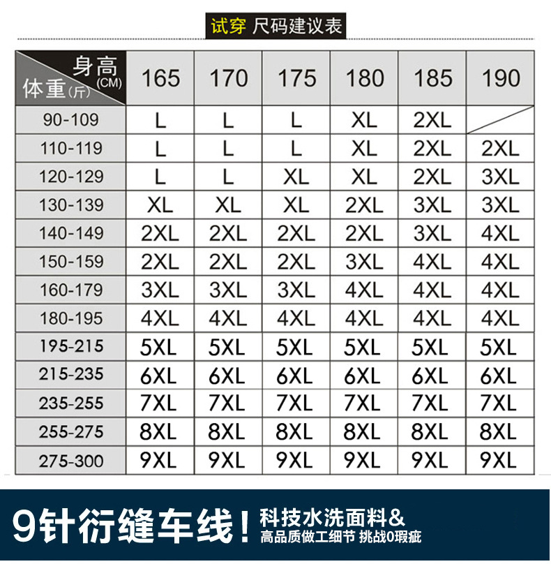 L; XL; XXL; 3XL; 4XL; 5XL; 6XL; 7XL; 8XL; 9XL