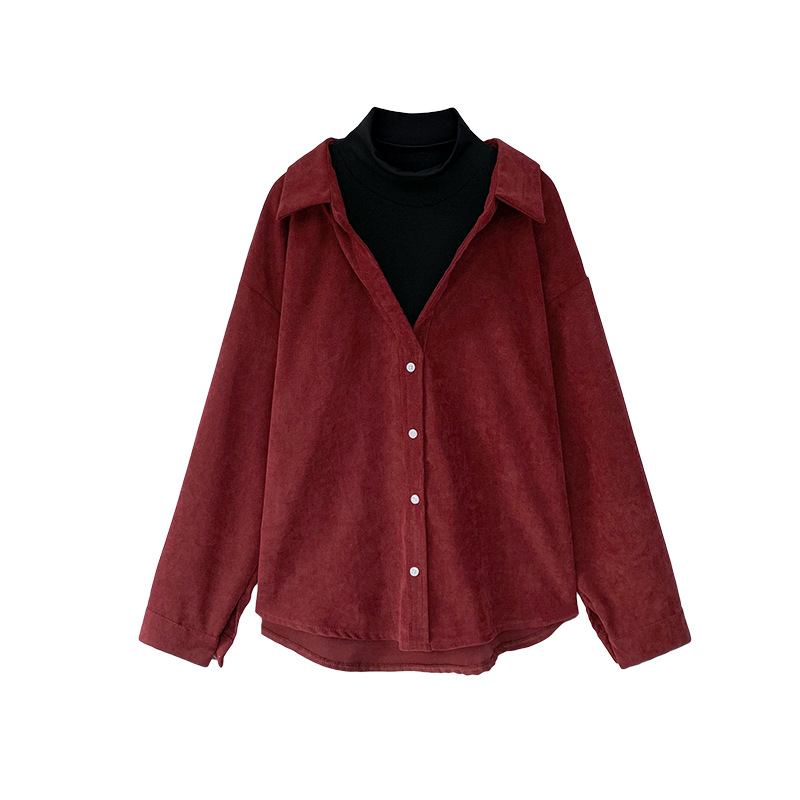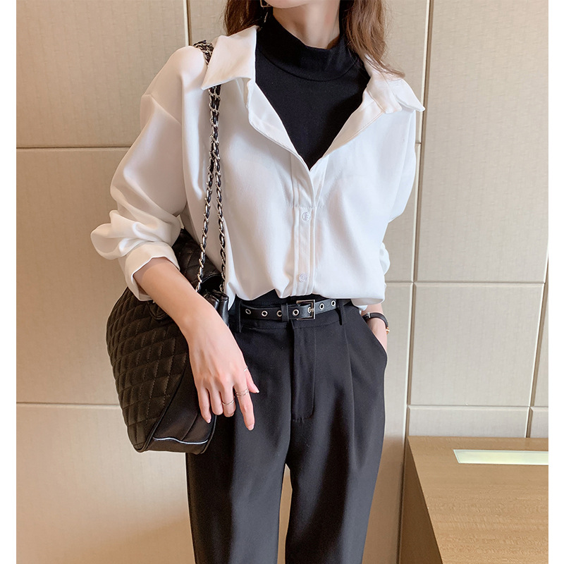 Поддельная женская рубашка из двух частей, весна и осень, новый дизайн в Корейском стиле, высокая водолазка с вышивкой в нише, модная рубашка с низом