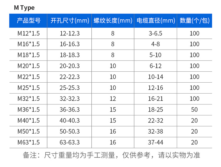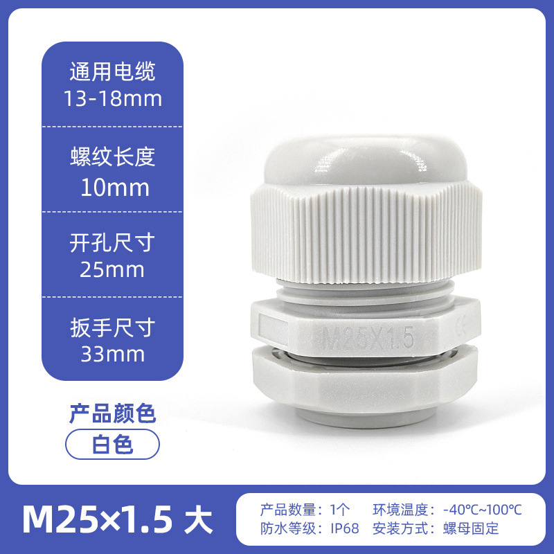 Белый M8 * 1.25; Черный M8 * 1.25; Белый M10 * 1.5; Черный M10 * 1.5; Белый M12 * 1.5; Черный M12 * 1.5; Белый M16 * 1.5; Черный M16 * 1.5; Белый M18 * 1.5; Черный M18 * 1.5; Белый M20 * 1.5; Черный M20 * 1.5; Белый M22 * 1.5; Черный M22 * 1.5; Белый M24 * 1.5; Черный M24 * 1.5; Белый M25 * 1.5; Черный M25 * 1.5; Белый M25 * 1.5 (большой); Черный M25 * 1.5 (большой); Белый M27 * 1.5; Черный M27 * 1.5; Белый M30 * 1.5; Черный M30 * 1.5; Белый M32 * 1.5; Черный M32 * 1.5; Белый M36 * 1.5; Черный M36 * 1.5; Белый M40 * 1.5; Черный M40 * 1.5; Белый M50 * 1.5; Черный M50 * 1.5; Следующий тип PG (черная заметка); Белый PG7; Белый PG9; Белый PG11; Белый PG13.5; Белый PG16; Белый PG19; Белый PG21; Белый PG25; Белый PG29; Белый PG36; Белый PG42