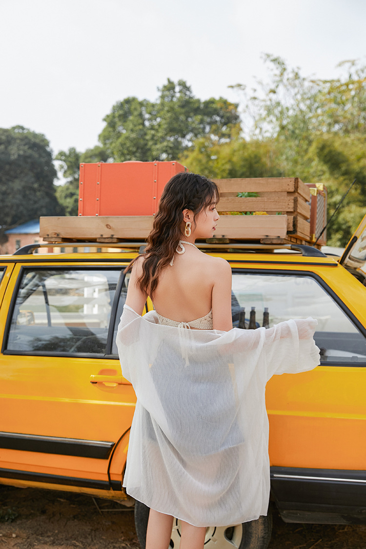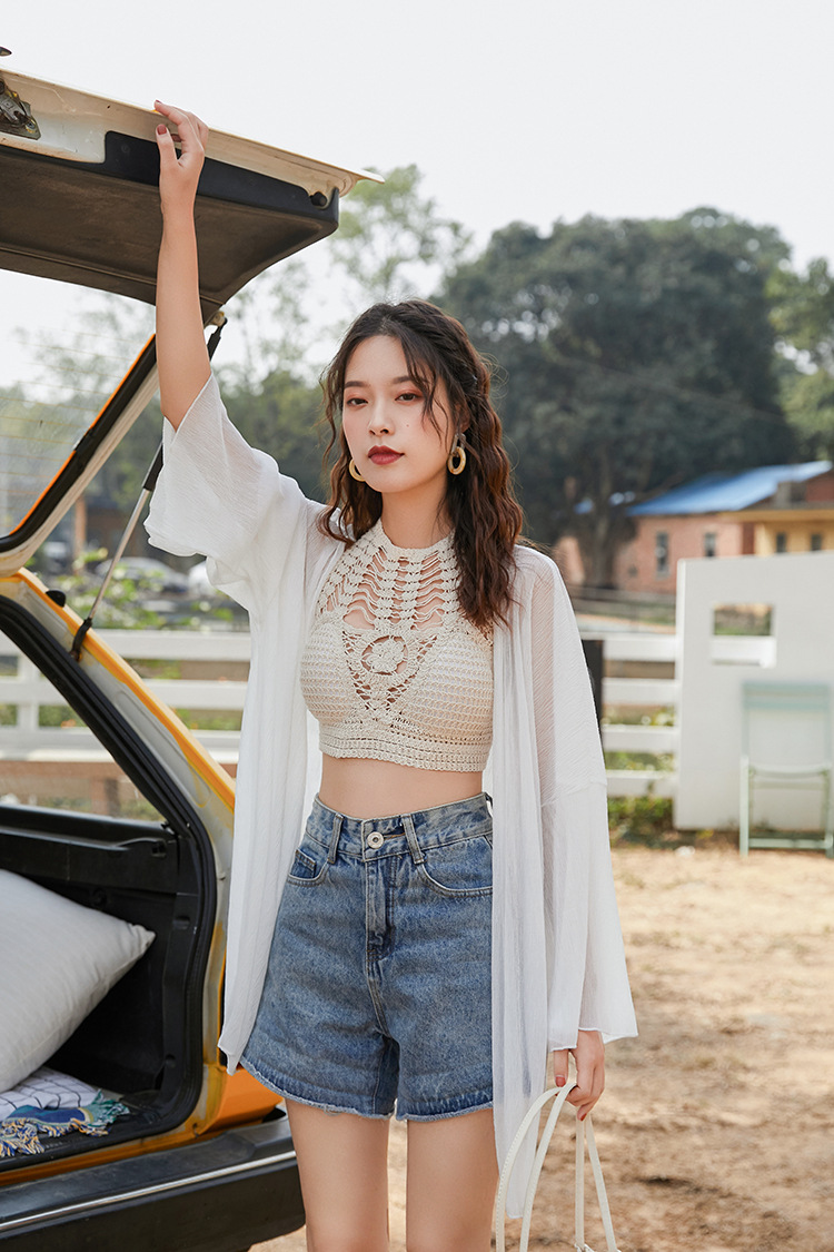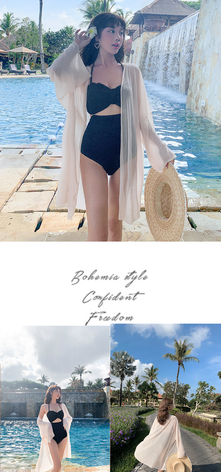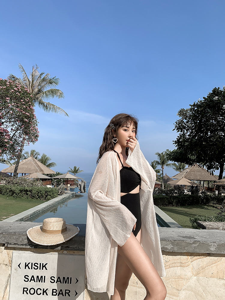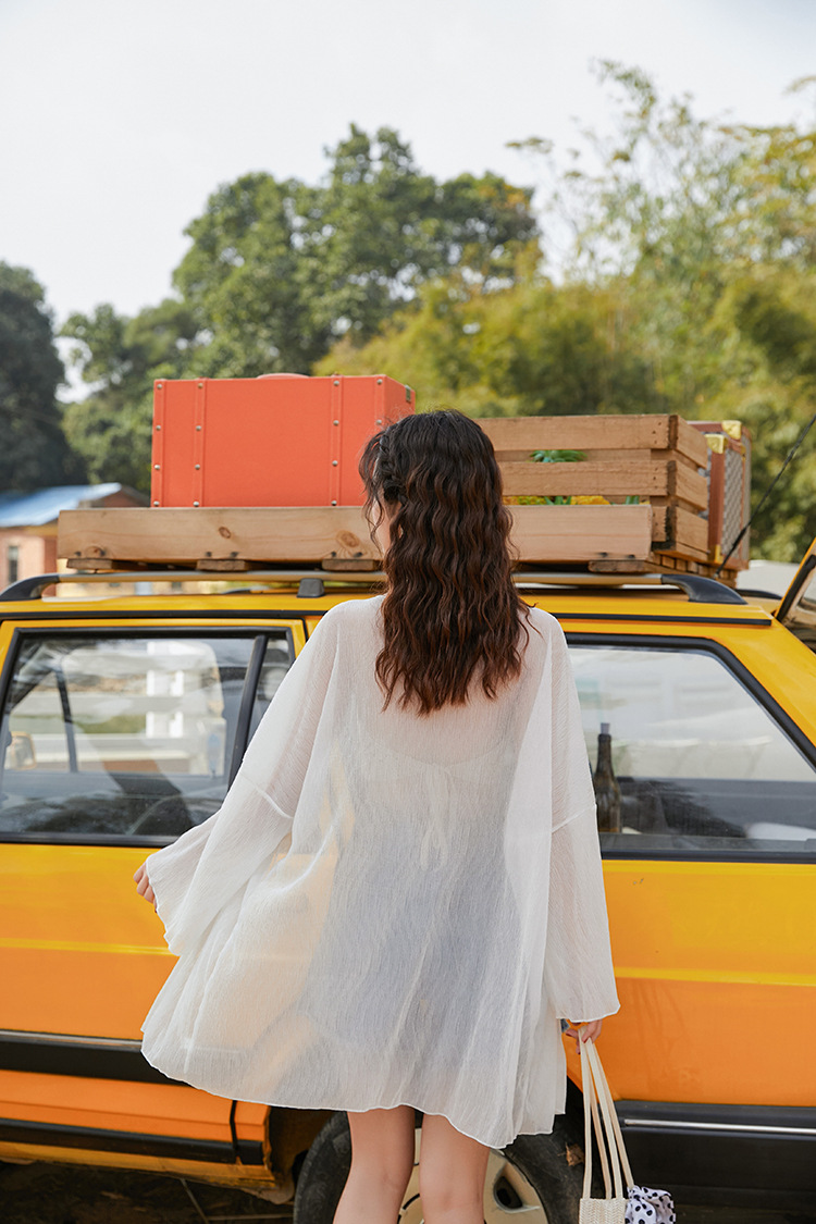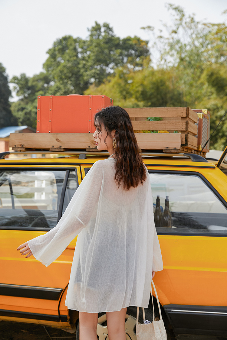 2023 Мальдивы Приморский курортный ветер Легкий плиссированный шифоновый кардиган