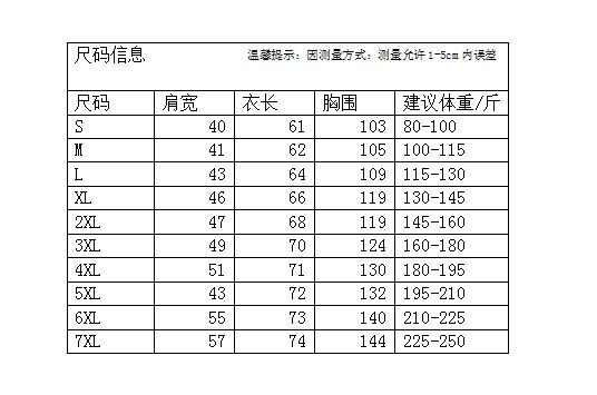 S; M; L; XL; XXL; XXXL; XXXXL; 5XL; 6XL; 7XL