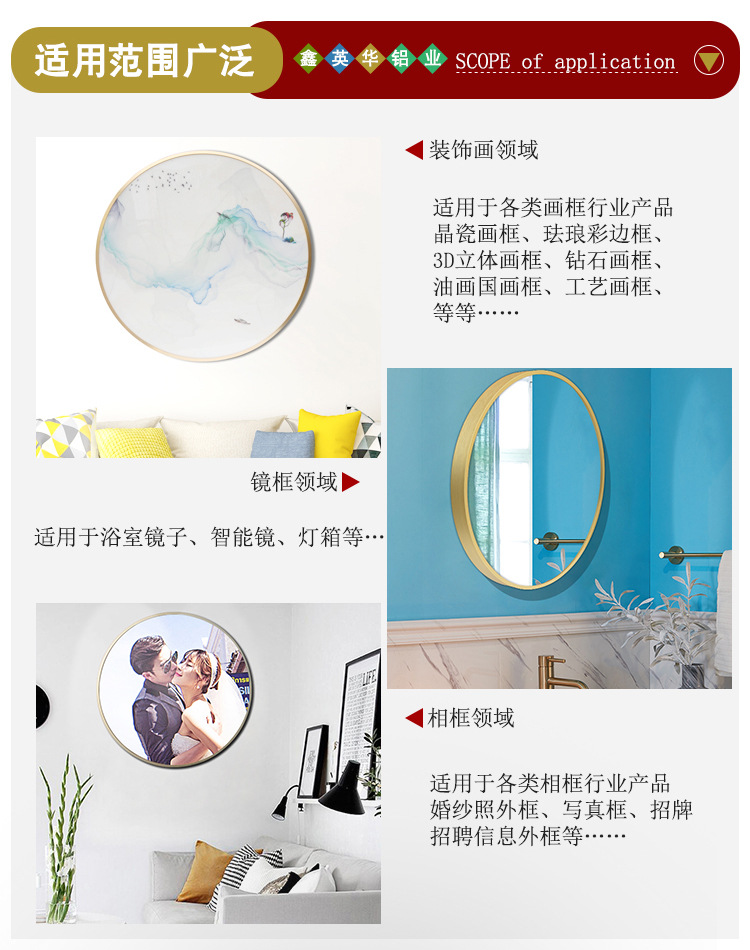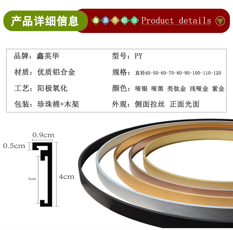 Xinyinghua Круглая рамка из алюминиевого сплава Декоративная рамка для рисования Умное зеркало Металлическая рамка Хрустальная фарфоровая живопись Фоторамка