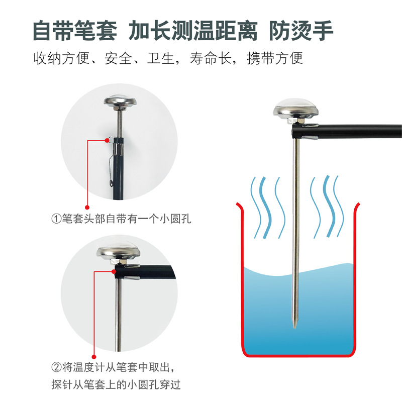 适用范围:本产品适合牛奶咖啡、烤肉、茶水以及烘焙食物的温度测量。