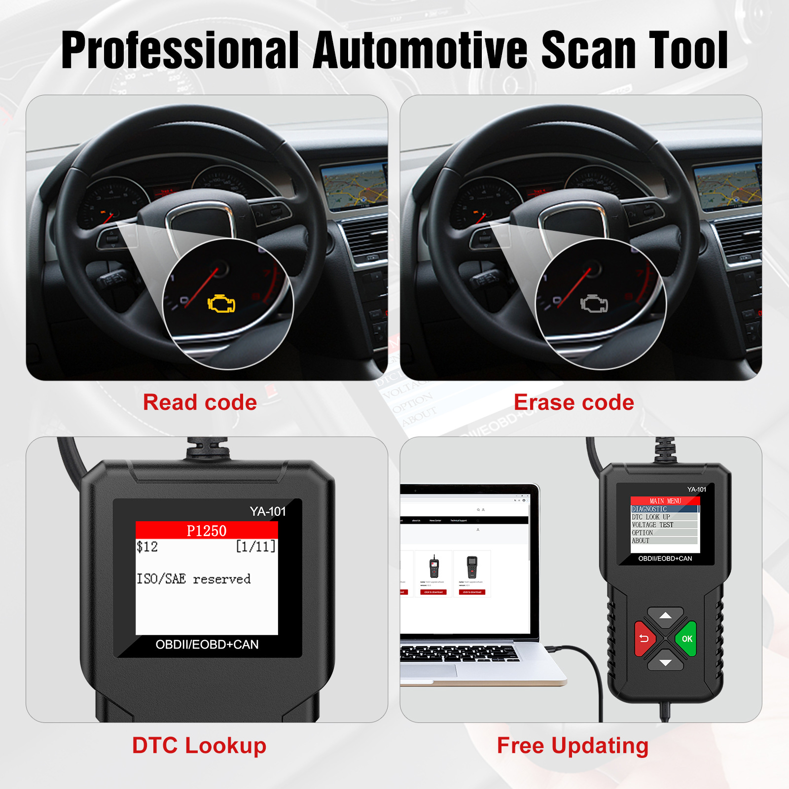 YA101为超高性价比平台主推综合型OBDII汽车读码卡,源头厂家直供,可以OEM,ODM, 可以品牌授权,详询客服!