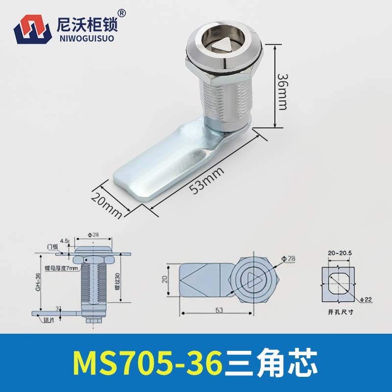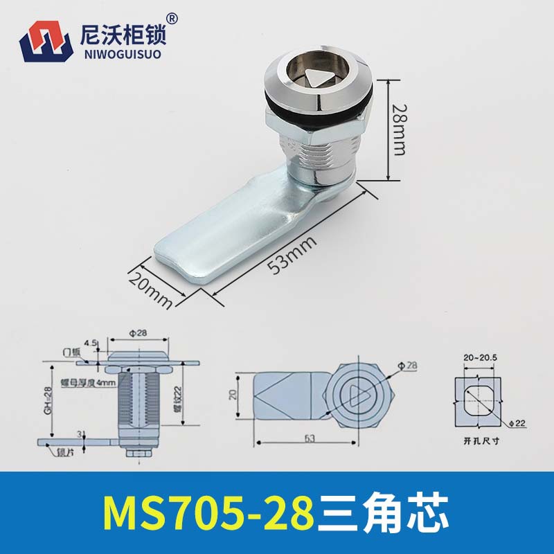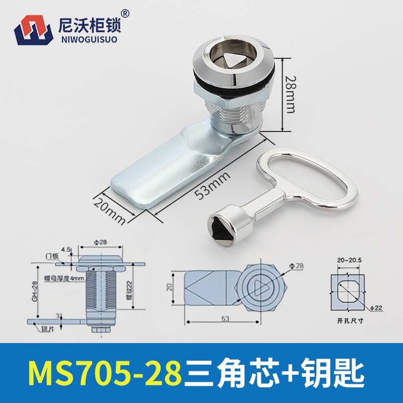 MS705-28-36-40-62 Удлиненный треугольный замок длинный замок для мусора промышленного оборудования цилиндрический замок толстый Поворотный замок