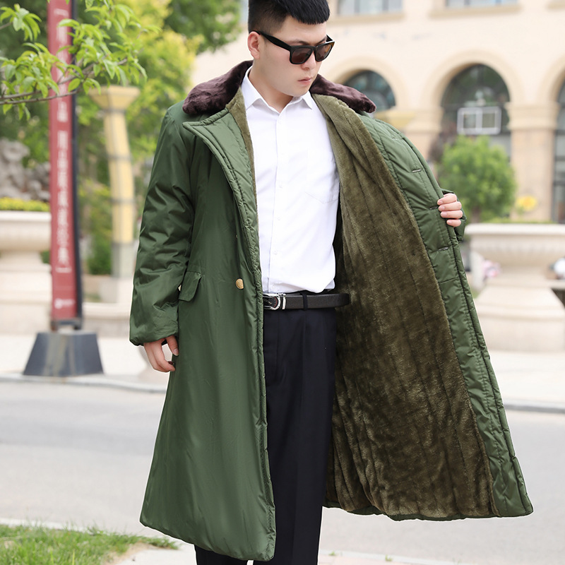 Зимнее водонепроницаемое зеленое хлопковое пальто в стиле милитари с бархатом и утолщенным мужским пальто в стиле милитари средней длины, хлопковое пальто для защиты труда, хлопковое пальто для оказания помощи при стихийных бедствиях