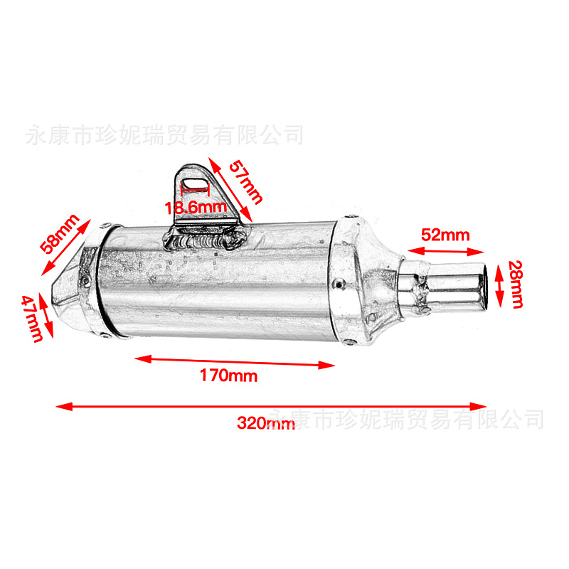 ATV沙滩车越野摩托车配件28MM排气消音管筒尾段BBR TXL TTR CRF红黑铝50-150cc