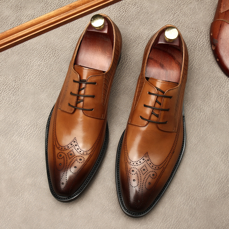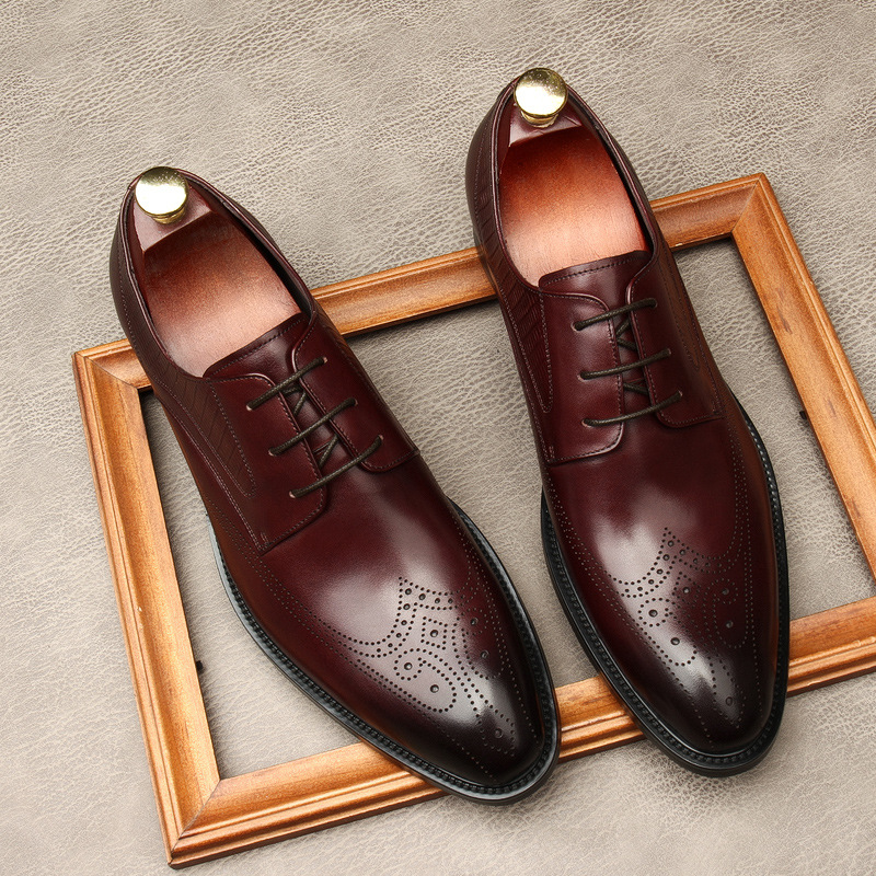 Мужская резная обувь Brock, нескользящая официальная кожаная обувь с острым носком, мужская деловая обувь, свадебная обувь, британская повседневная кожаная обувь, модная